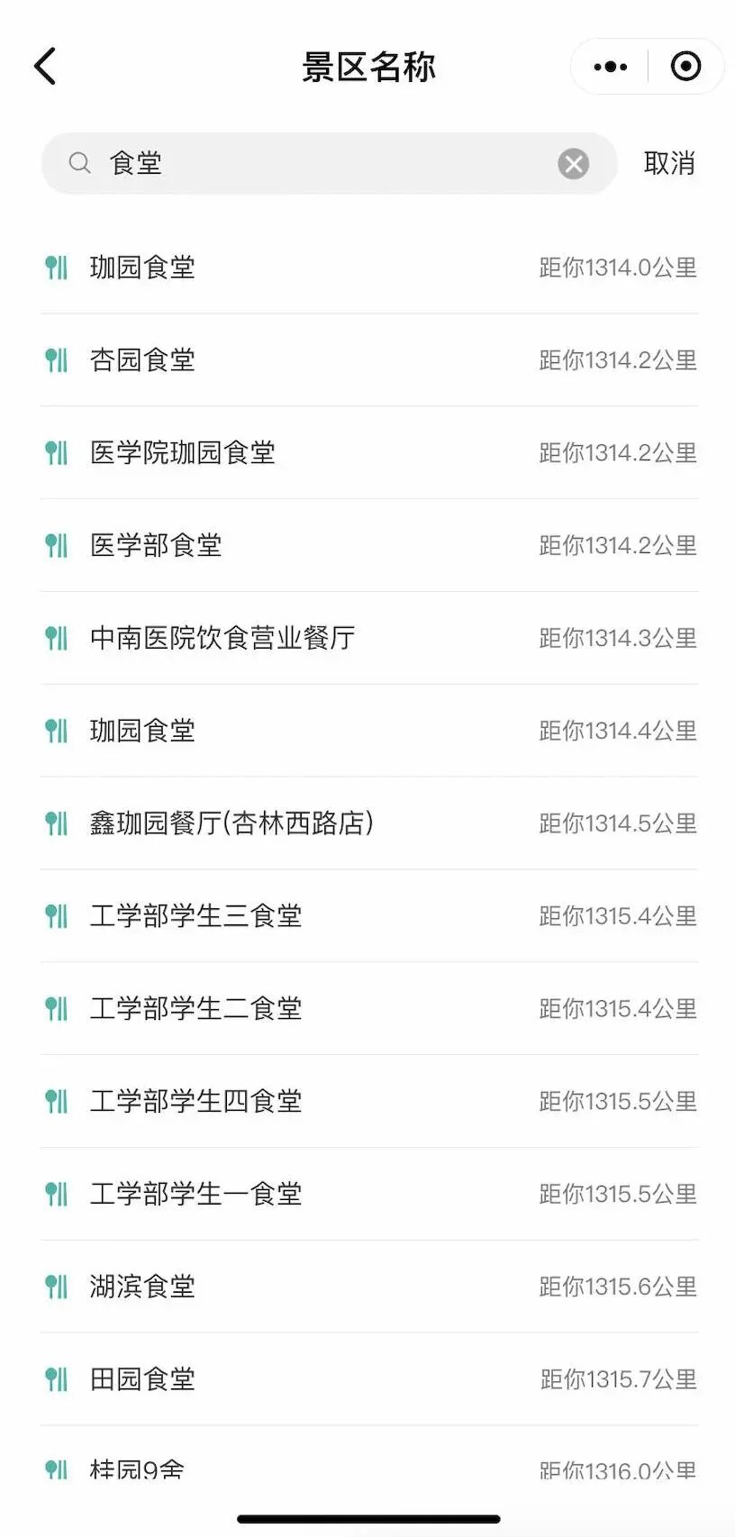 如果要找最近的食堂干饭,可以在搜索框中输入食堂。