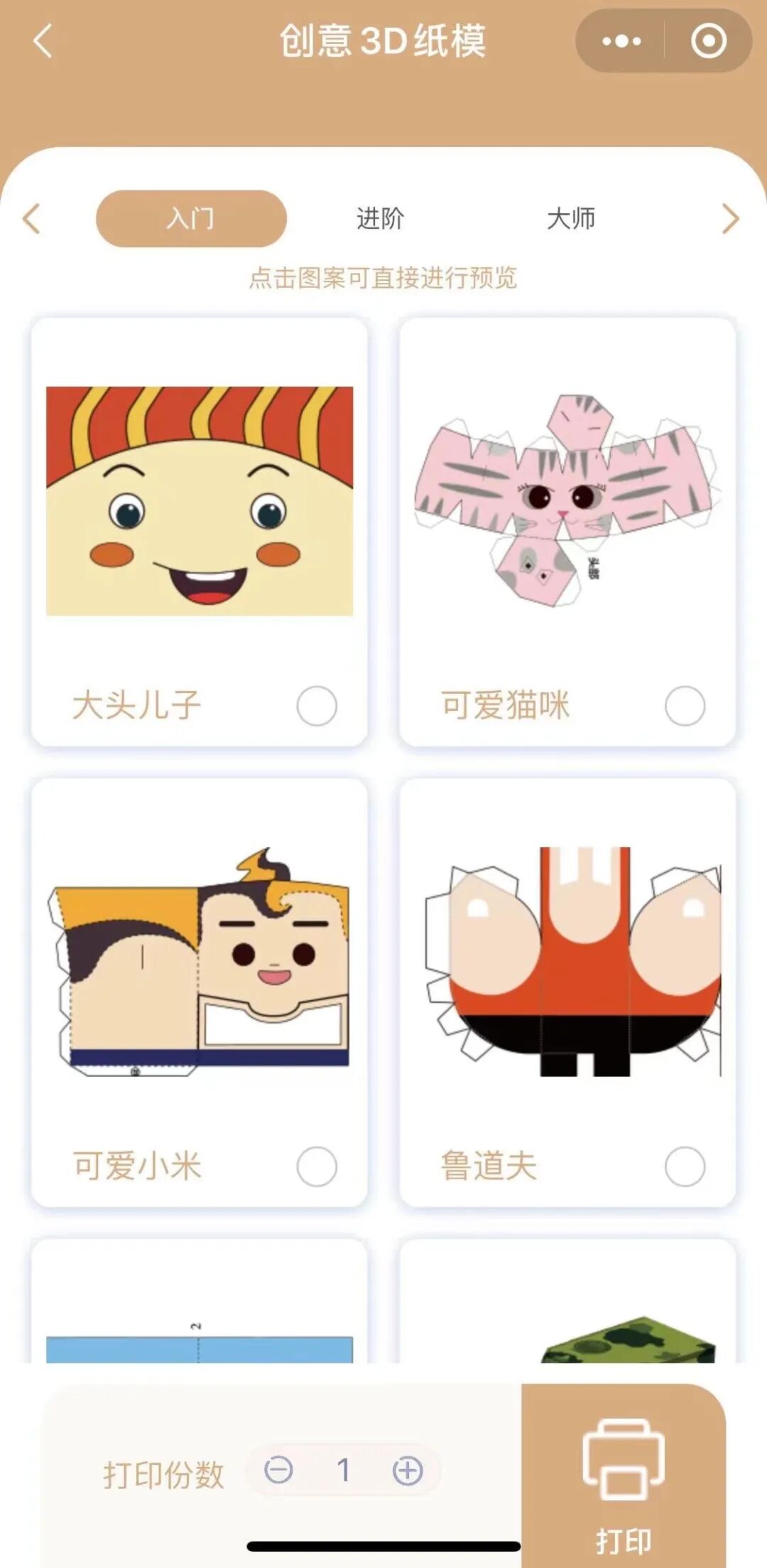 还有“创意3D纸模”、“缤纷手工乐园”板块,