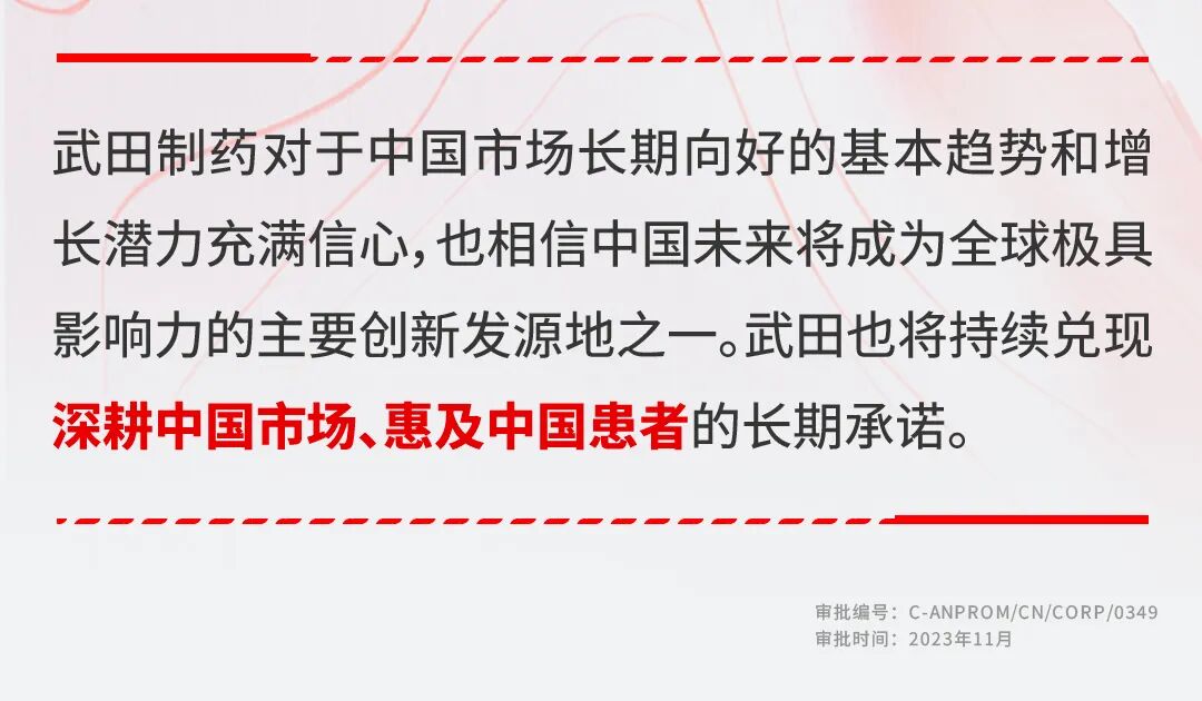 武田制药(东京证券交易所股票代码:4502)(纽约证券交易所股票代码:TAK)是一家总部位于日本、以价值观为基础、以研发为驱动的全球生物制药公司。武田致力于将科学研发成果转化为高度创新药品,为患者的健康生活和美好未来保驾护航。武田专注于四大治疗领域的药物研发:肿瘤、消化、神经科学及罕见病领域,并针对血液制品及疫苗领域进行专项研发投入。我们始终专注于高度创新药物的研发,通过开拓全新治疗方案、增强合作研发引擎实力,打造一条稳健且形式多样的产品管线,助力改善人们的生活。我们的员工遍布于大约80个国家和地区,与当地医疗健康合作伙伴携手,为全球患者带来健康福音。