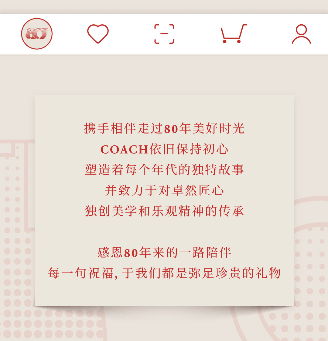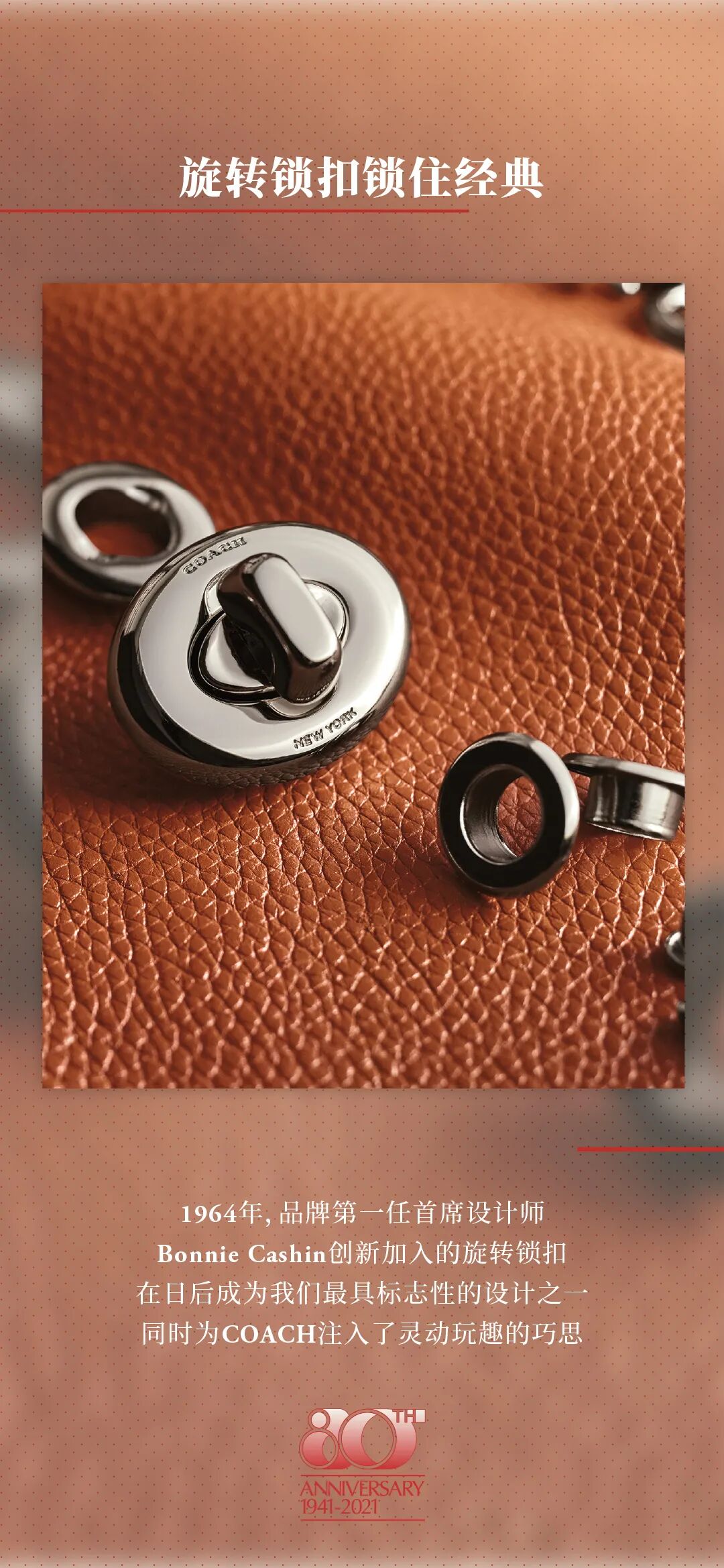 推荐:「点击展开」COACH的80周年活动,「点击弹出」不同饰品和衣服的介绍,吸引大家购买同款。