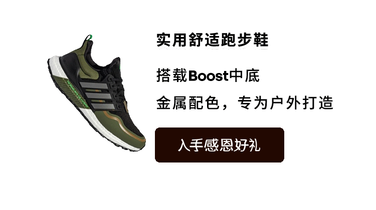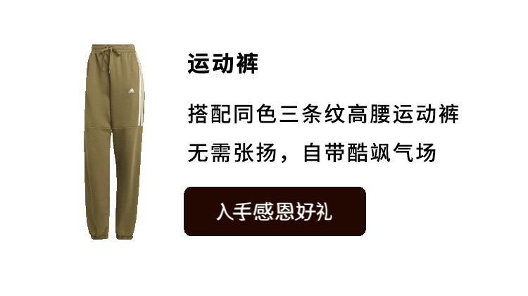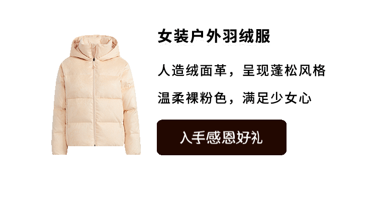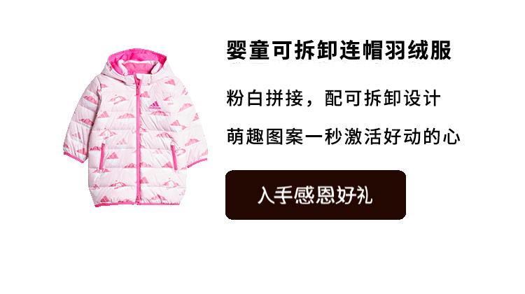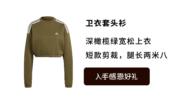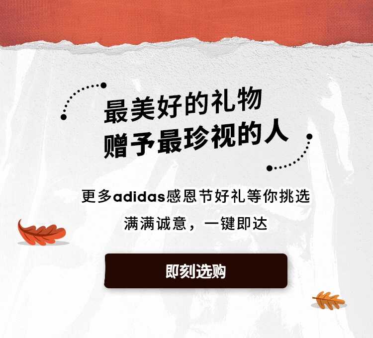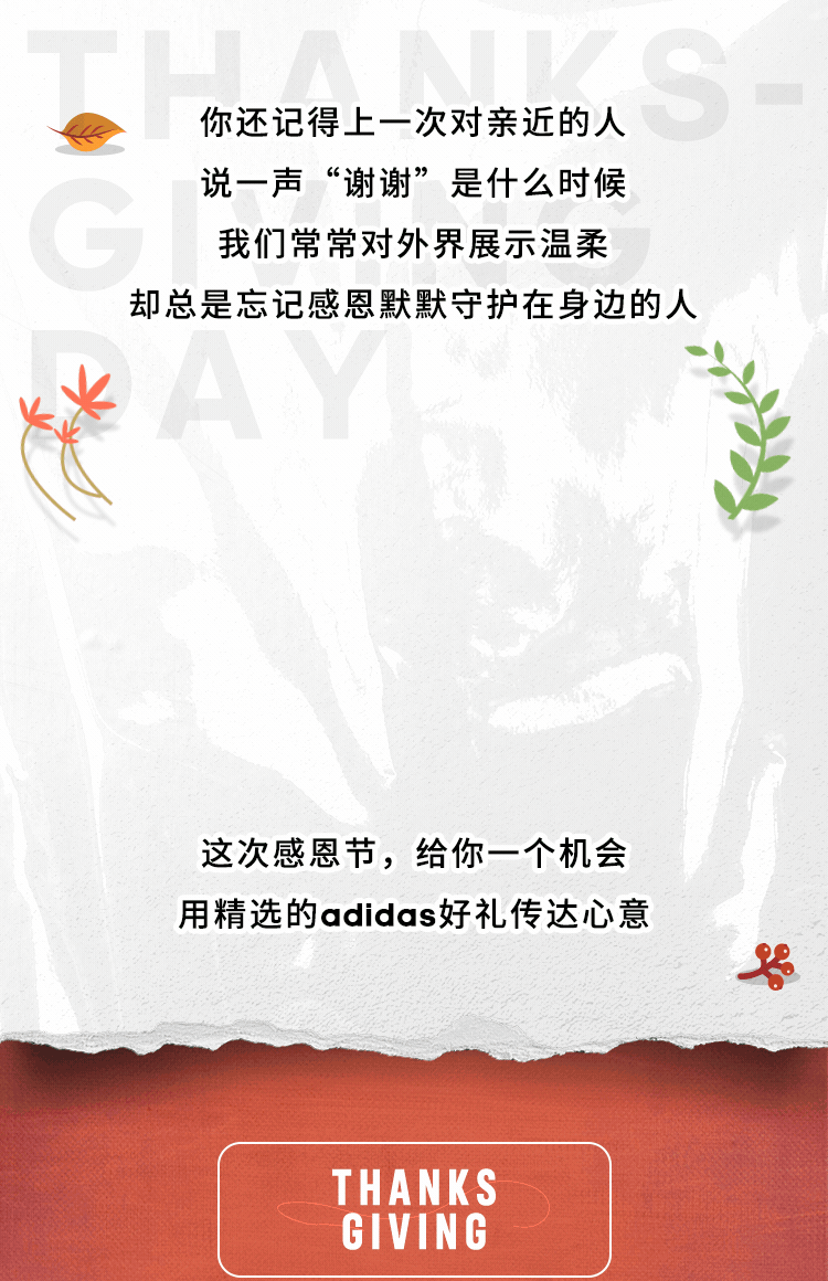 推荐:「上滑」围绕感恩身边人推荐adidas运动套装、跑鞋、羽绒服等产品,「左滑」展示更多感恩好礼,引导用户选购。