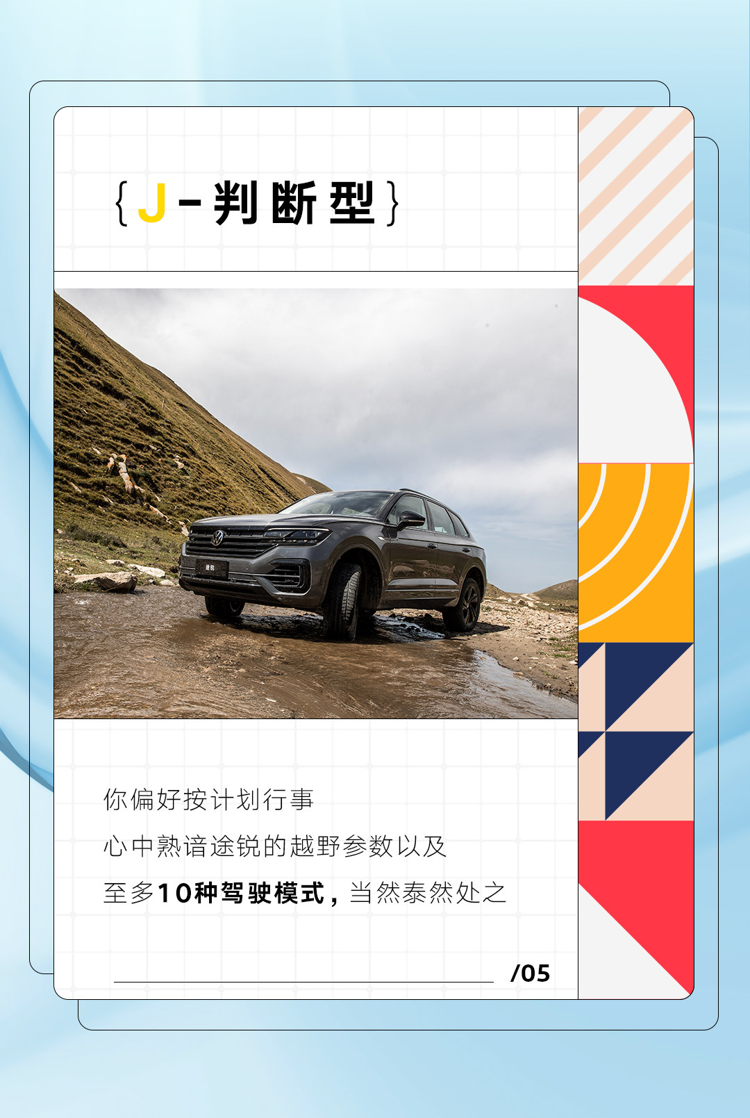 推荐:依次选择选项「点击弹出」途锐的MBTI测试,从而宣传大众进口汽车,吸引大家前往购买。