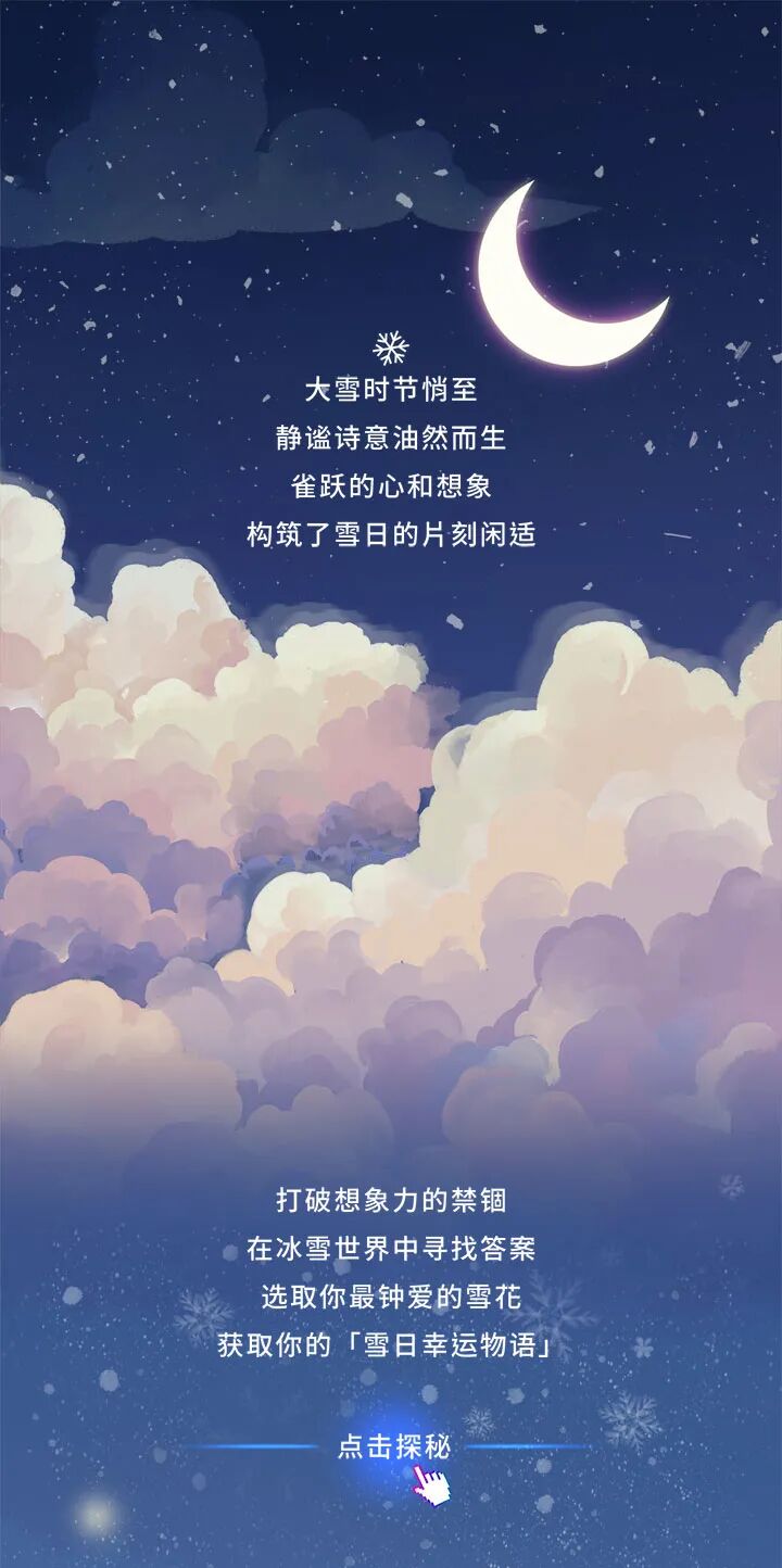 推荐:「点击展开」进入冰雪世界,吸引大家依次点击雪花获取雪日幸运物语,借此宣传海信ULED电视。