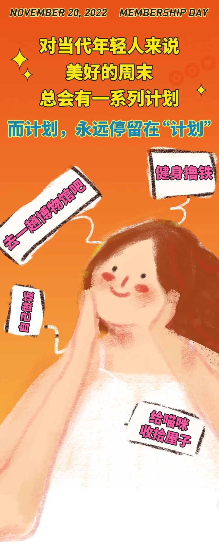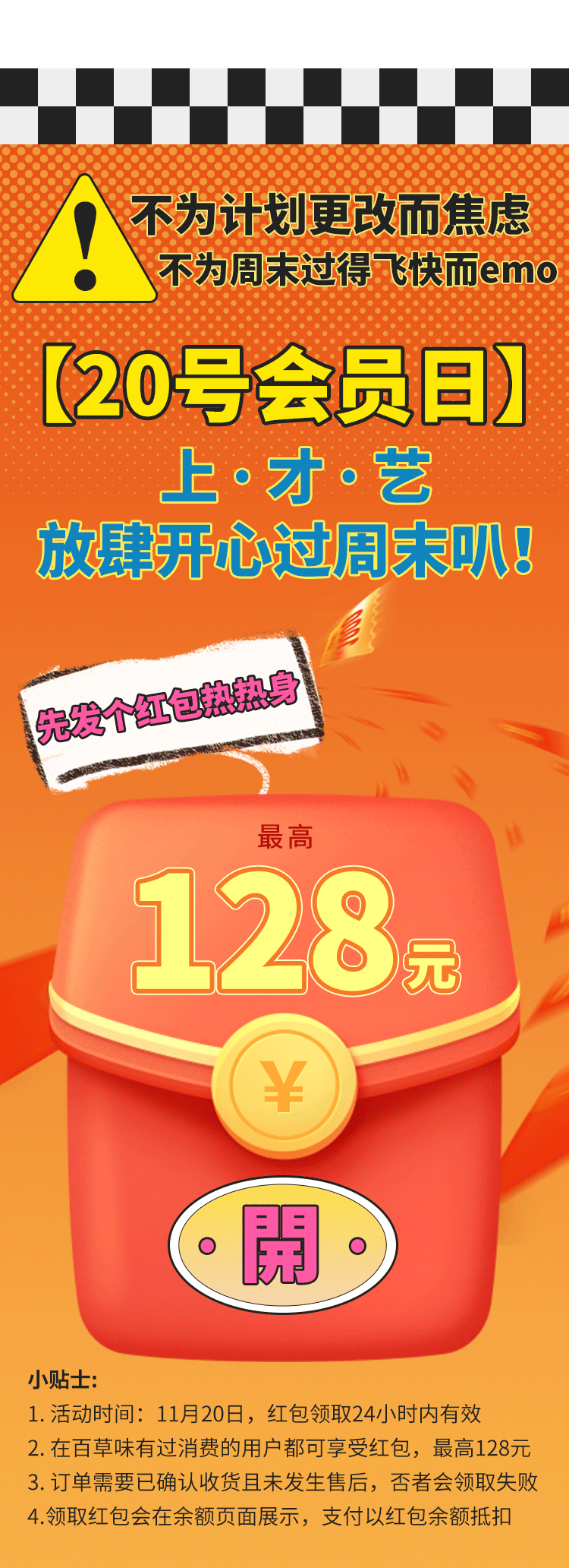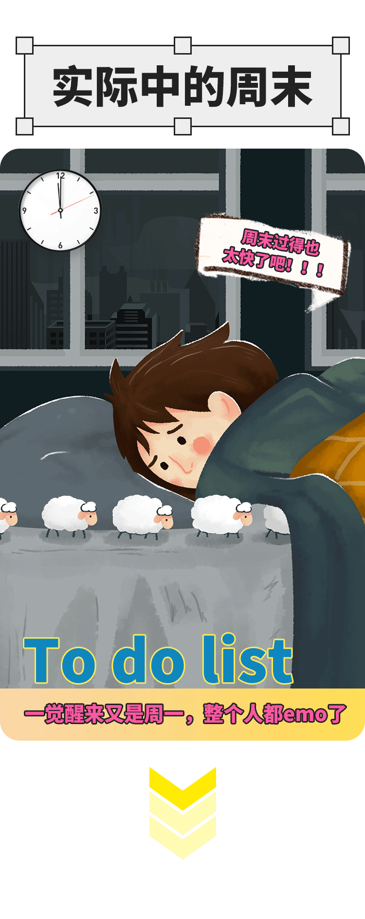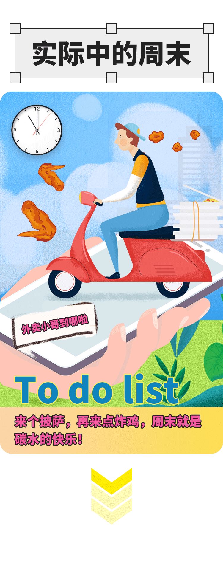 推荐:「点击切换GIF动图」揭秘计划中的周末和实际上的周末,借此推出周末会员日活动,吸引大家领取红包购买零食。
