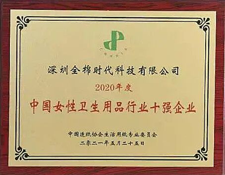 *获得奖项:中国女性卫生用品行业十强