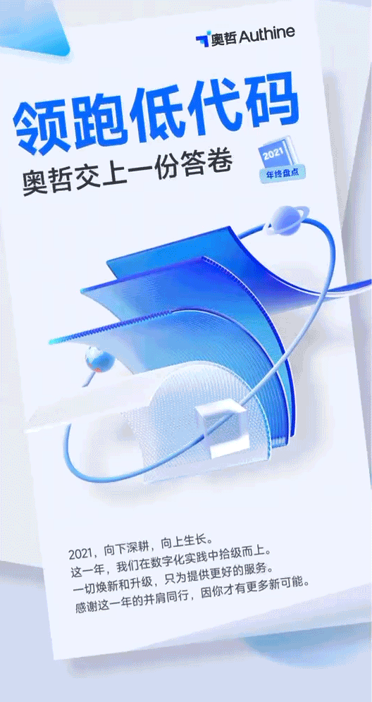 在年终总结之际,奥哲通过引导大家「点击消失+下拉展开」2021数字化水平测试的答卷,借此宣传奥哲取得的成绩。