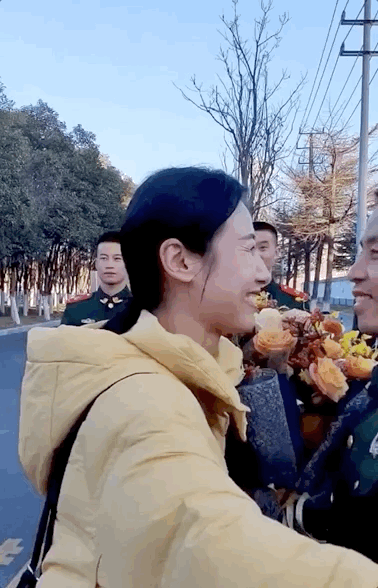 军嫂迎接丈夫退伍回家
