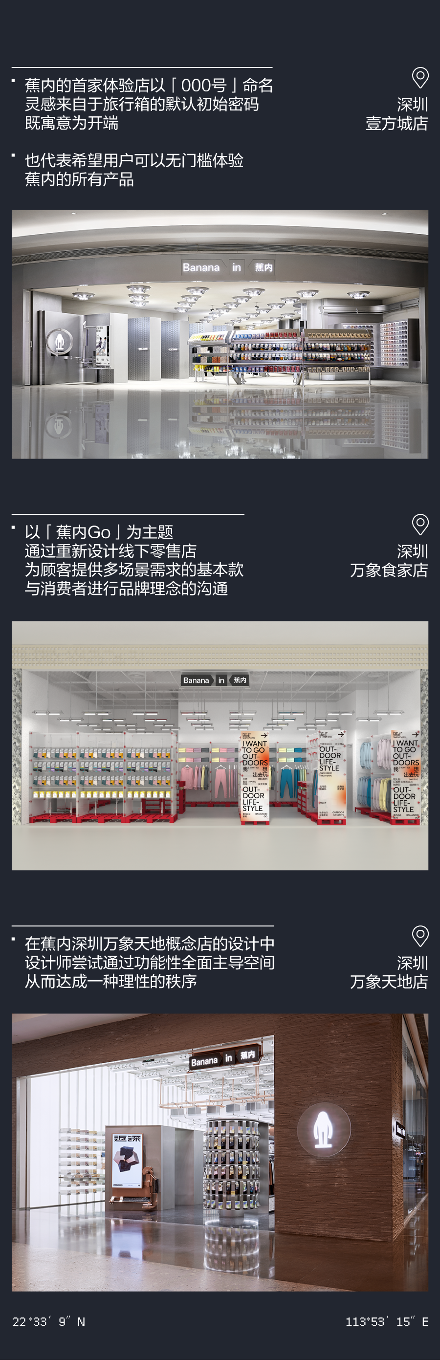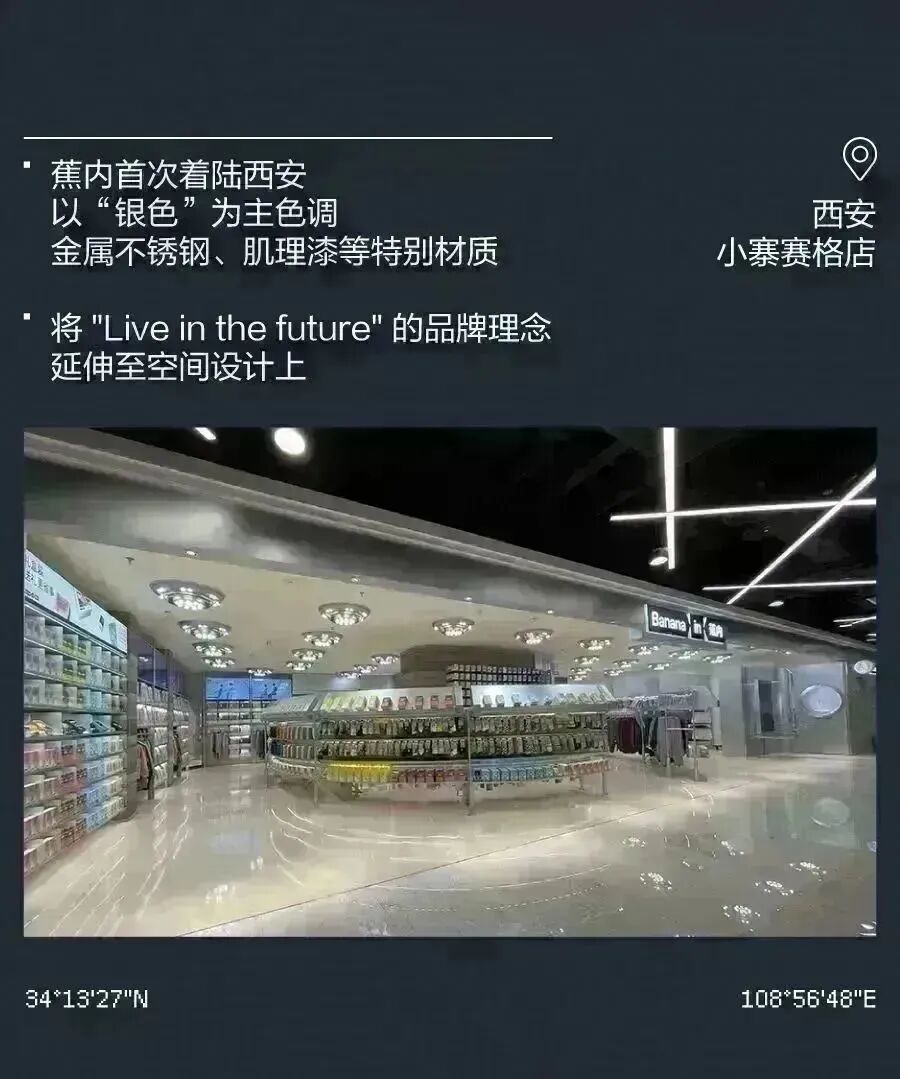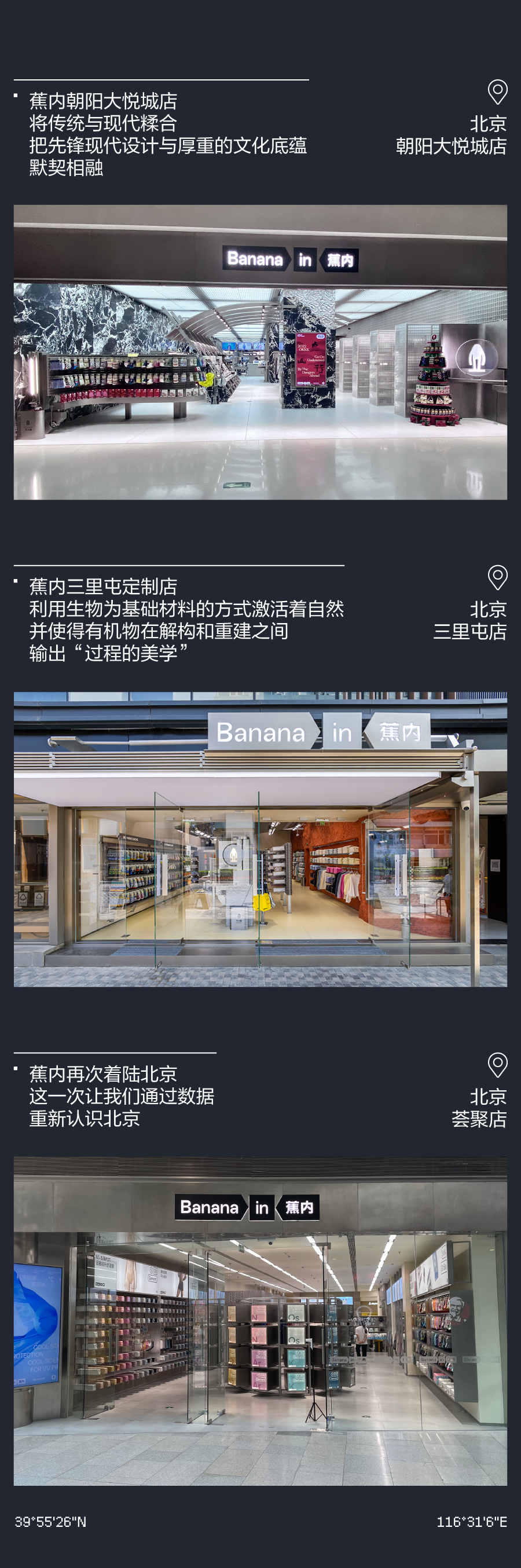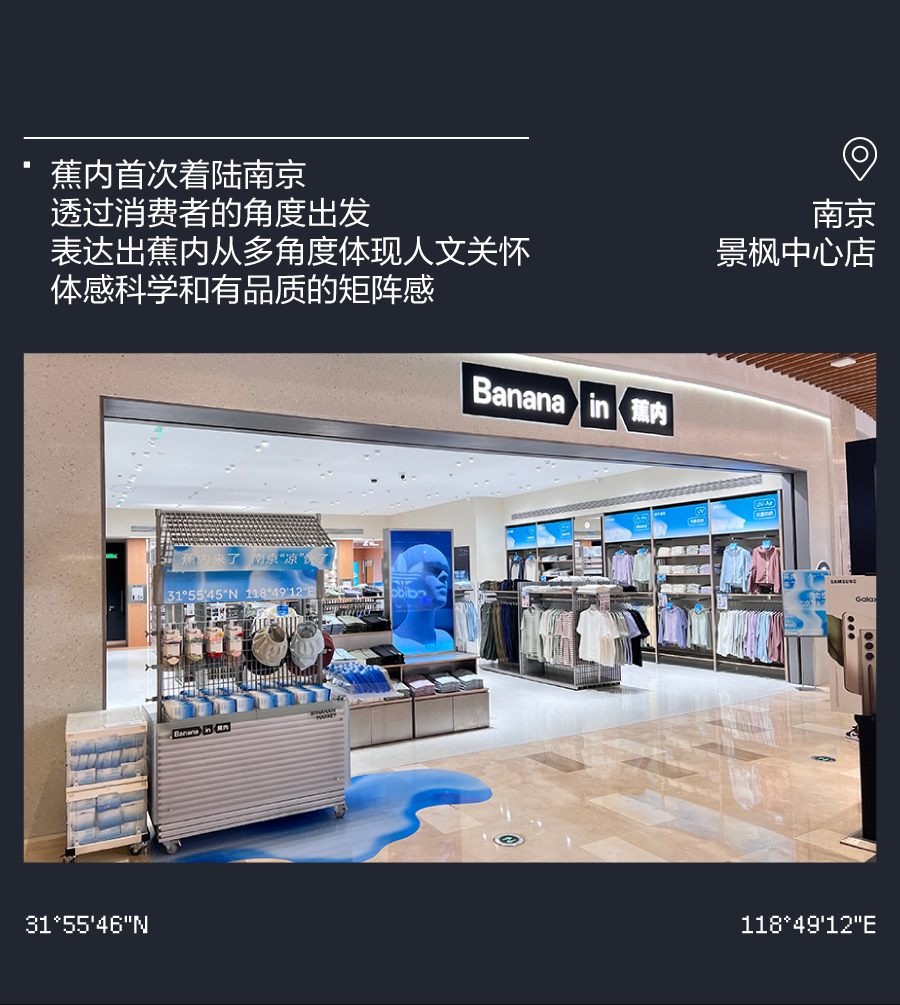 推荐:「点击左移切换」模拟登月时刻,「点击弹出」各个城市的门店介绍,借此宣传蕉内的开店计划,吸引大家入店选购。