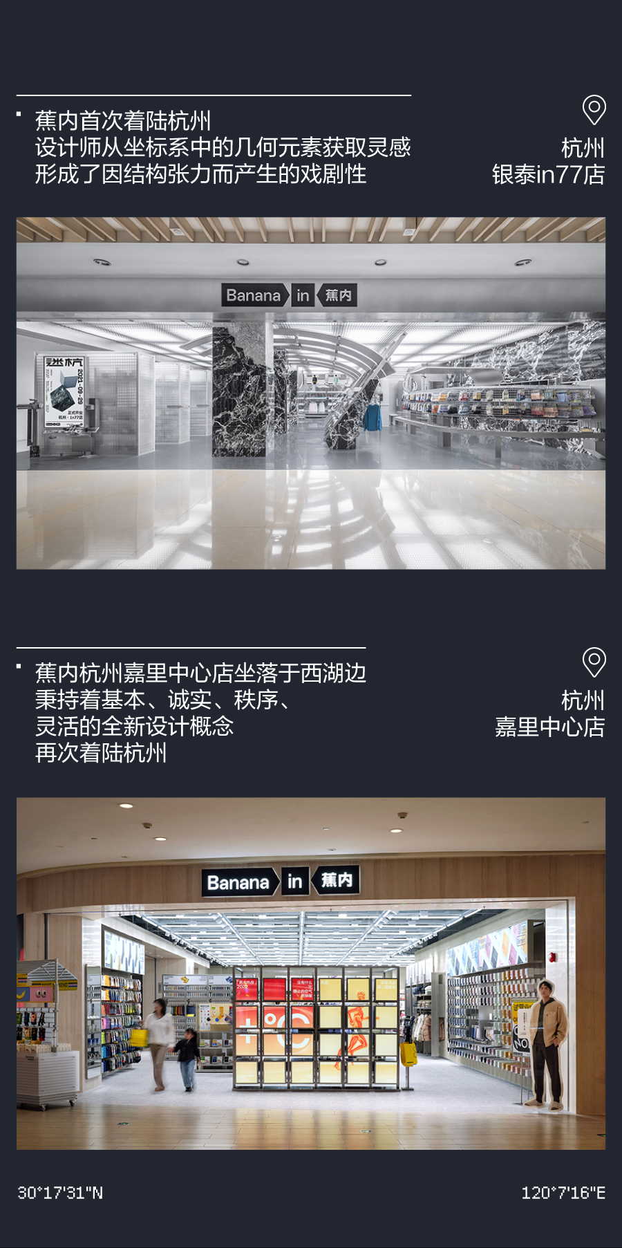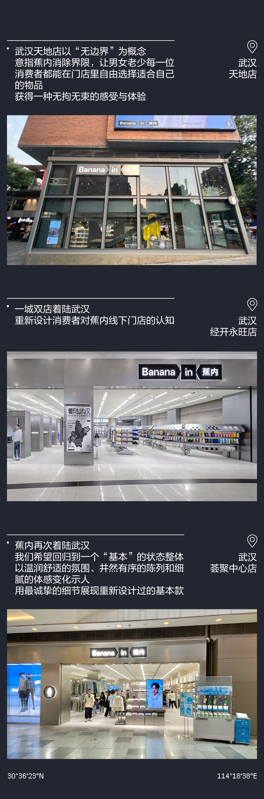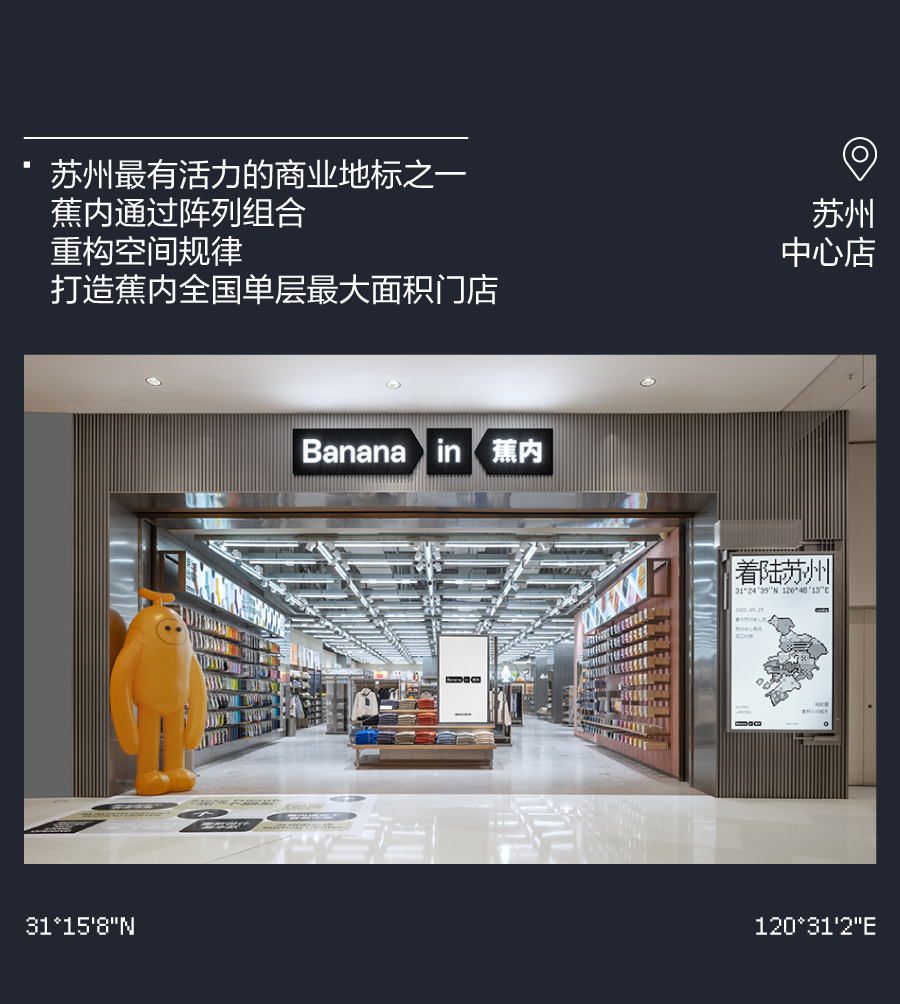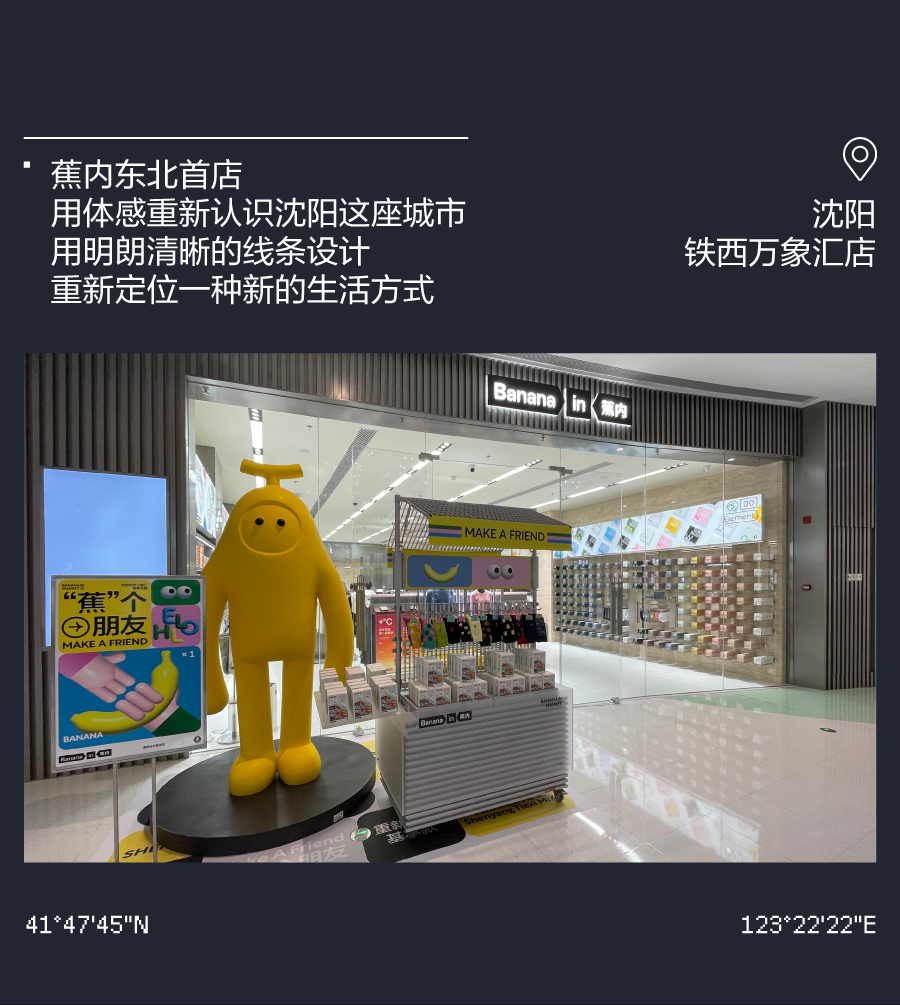 推荐:「点击左移切换」模拟登月时刻,「点击弹出」各个城市的门店介绍,借此宣传蕉内的开店计划,吸引大家入店选购。