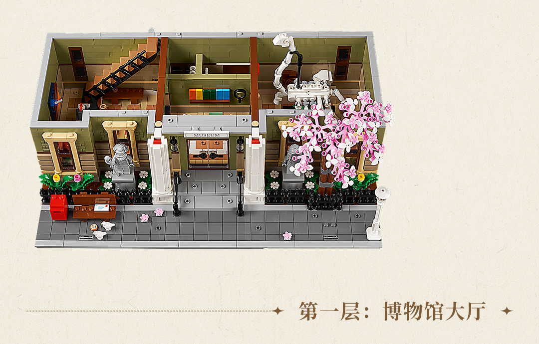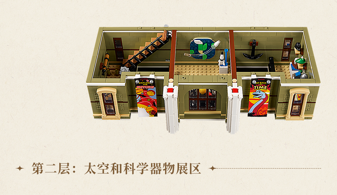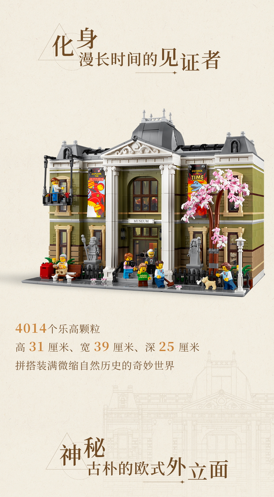 推荐:「点击切换后展开」穿越后的奇妙世界,借此宣传10326自然历史博物馆系列的乐高玩具,吸引大家来拼装。
