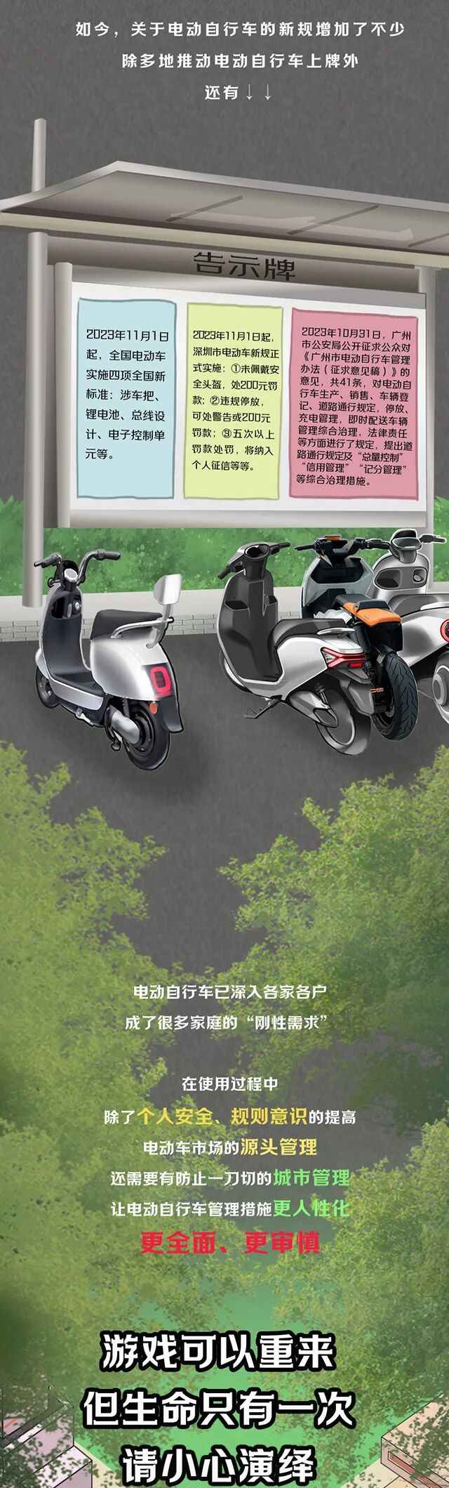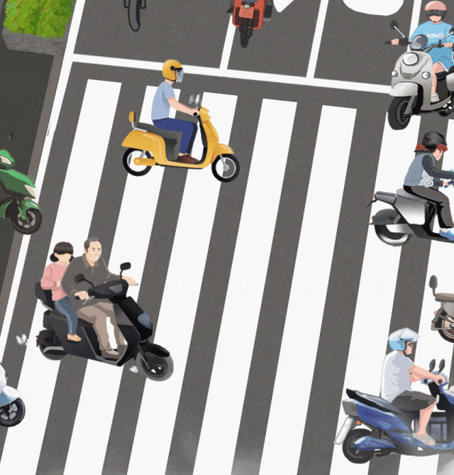 推荐:「连续点击切换GIF后展开」模拟骑电动自行车可能会遇到的危险,借此科普电动自行车的正确驾驶要求。