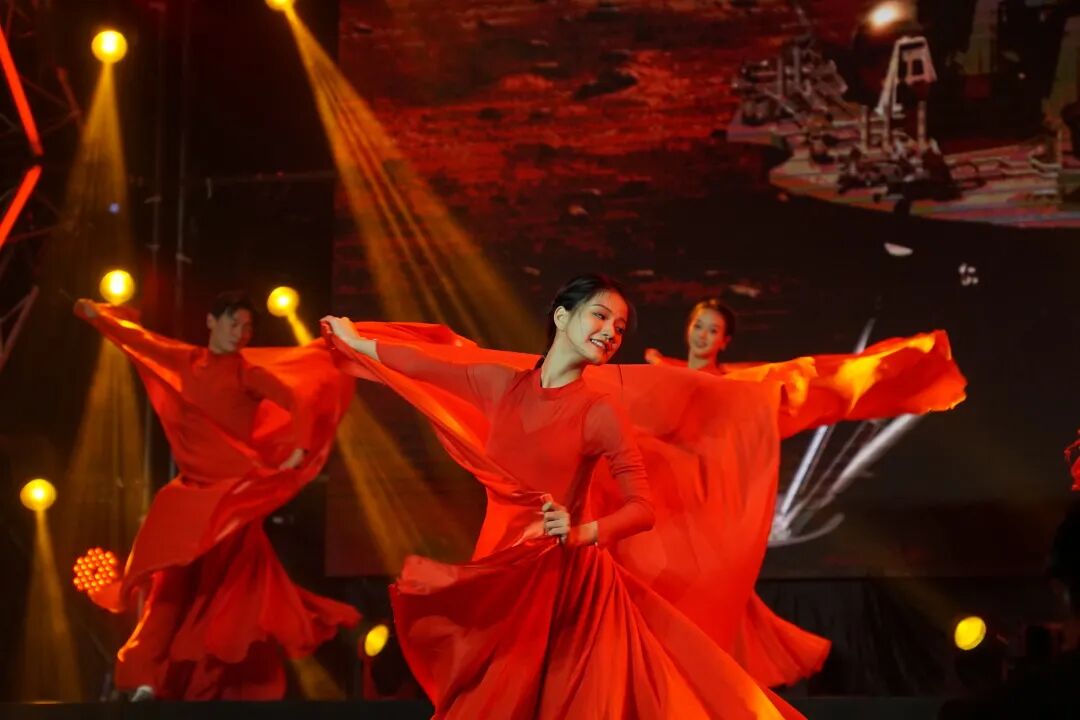 整场晚会共分为“荔园春早”“荔园芬芳”“荔园飞歌”三个篇章,采用歌曲联唱、情景表演唱、情景讲述、情景歌舞、配乐朗诵等多种艺术形式,以视觉化极强的情景故事方式串联,以道具加人物现场抒怀的节目形式连接不同时空,展现了深大一路走来的不凡历程,40年来取得的累累成就,以及当今深大学子的青春风采。