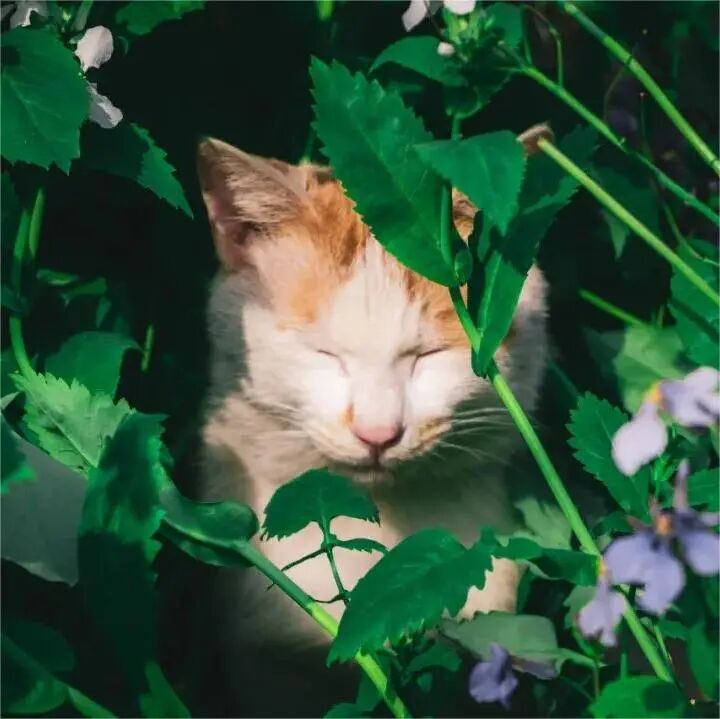 而眯眼晒太阳的佛系小猫咪