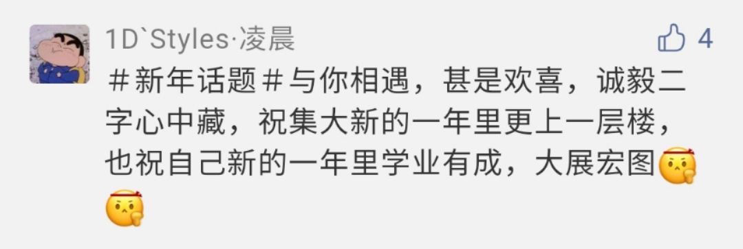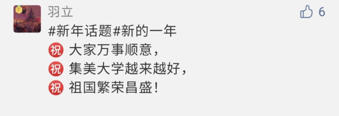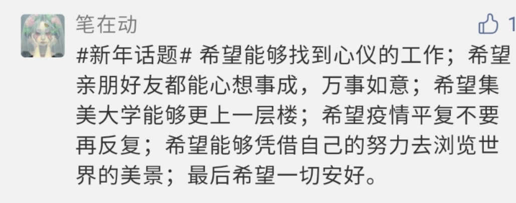 @金塌塌的小骄傲v:新的一年wuli暮语堂的各位姐妹要健健康康、快快乐乐哒!每个人都要拿到奖学金!各种比赛都冲第一!最后,2021年,散老师的愿望就是我的愿望!