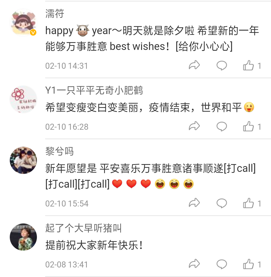 @胖ly小可爱:希望新的一年平安喜乐,家庭幸福,收获新的美好