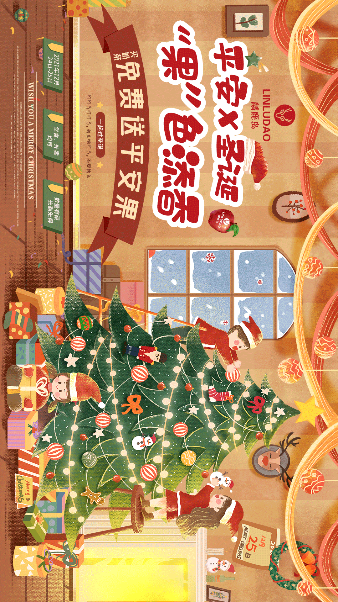 推荐:「点击展开」模拟打开礼盒并开启圣诞之旅,「上滑」模拟跟随圣诞老爷爷去送礼,最后「点击弹出」圣诞礼物,借此宣传麟鹿岛茶饮,吸引大家购买。