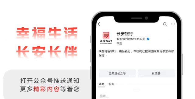 文章内容来源于公众号:长安银行 点此可查看原文。若涉及版权问题或存在侵权情况,请及时与我们联系,我们将第一时间进行删除处理。
