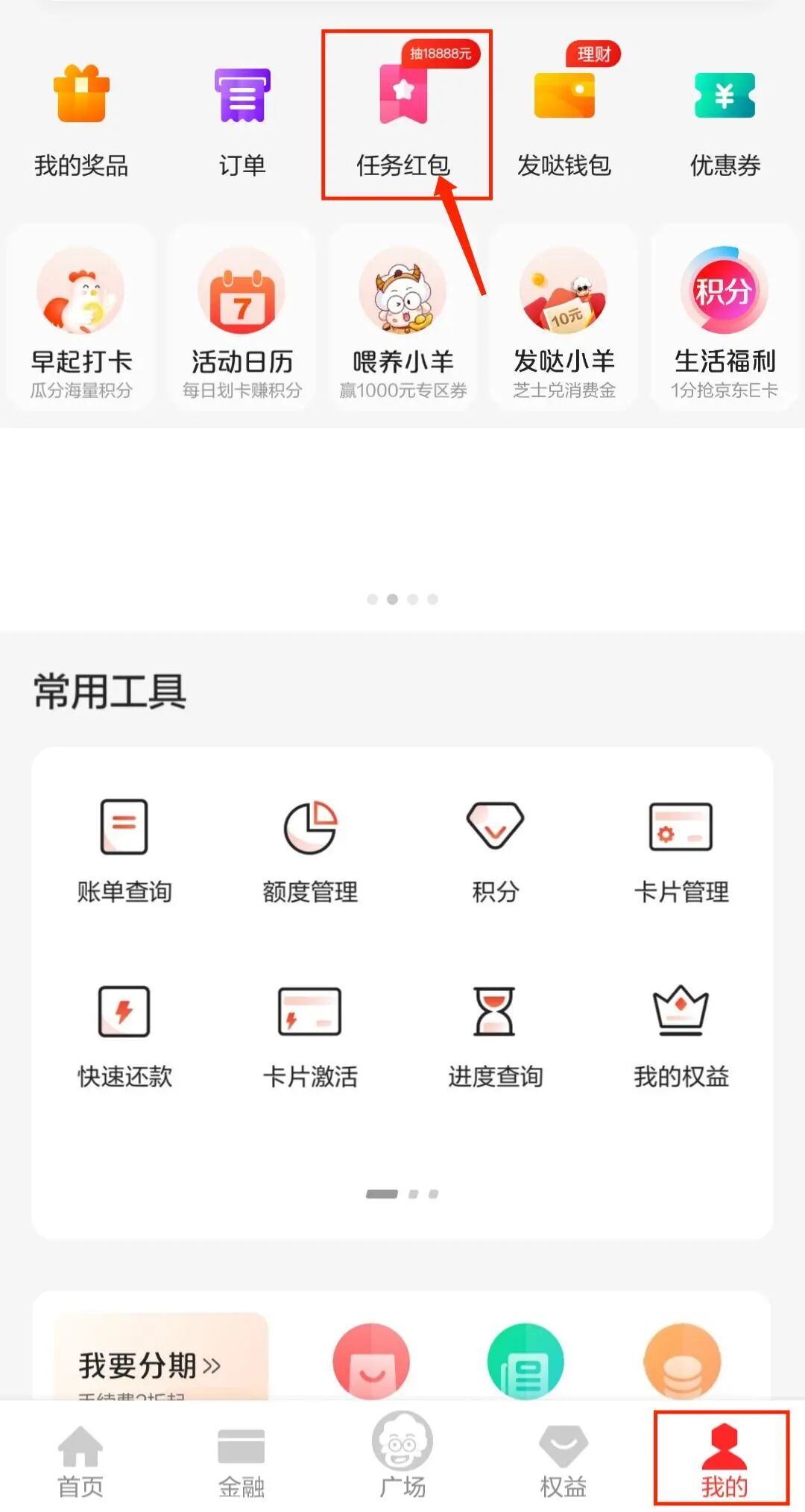 发现精彩APP-我的-任务红包-任务广场-互动礼