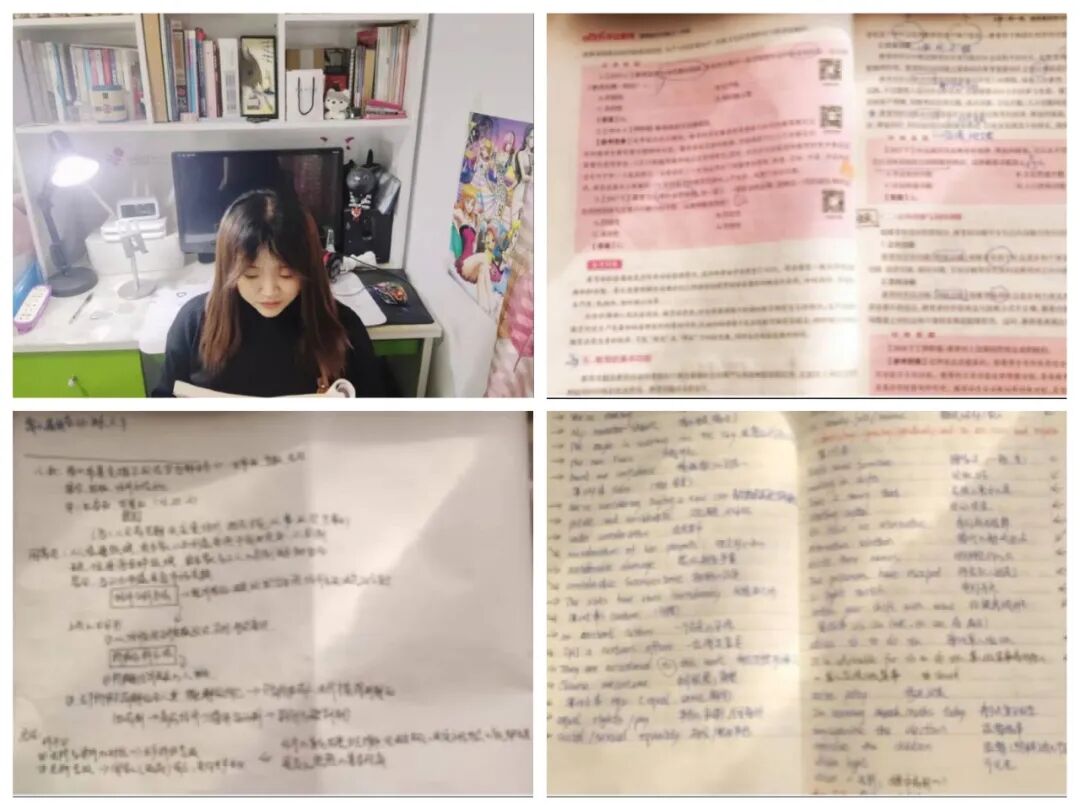 为了提升尽早地拿到教师资格证,早上八点,胡晓乐就进入学习状态,开始了教师资格证的备考。先对前一天的学习成果进行复习和巩固,然后再通过网课学习新的内容。四点之后,整理《共产党宣言》等其他与自身专业有关的学习笔记,为自己的专业课打牢基础。劳累之余放松一会之后,晚上八点之后,读一会英语单词,提升英语水平,弥补自己英语能力的不足,不断提升学习能力。