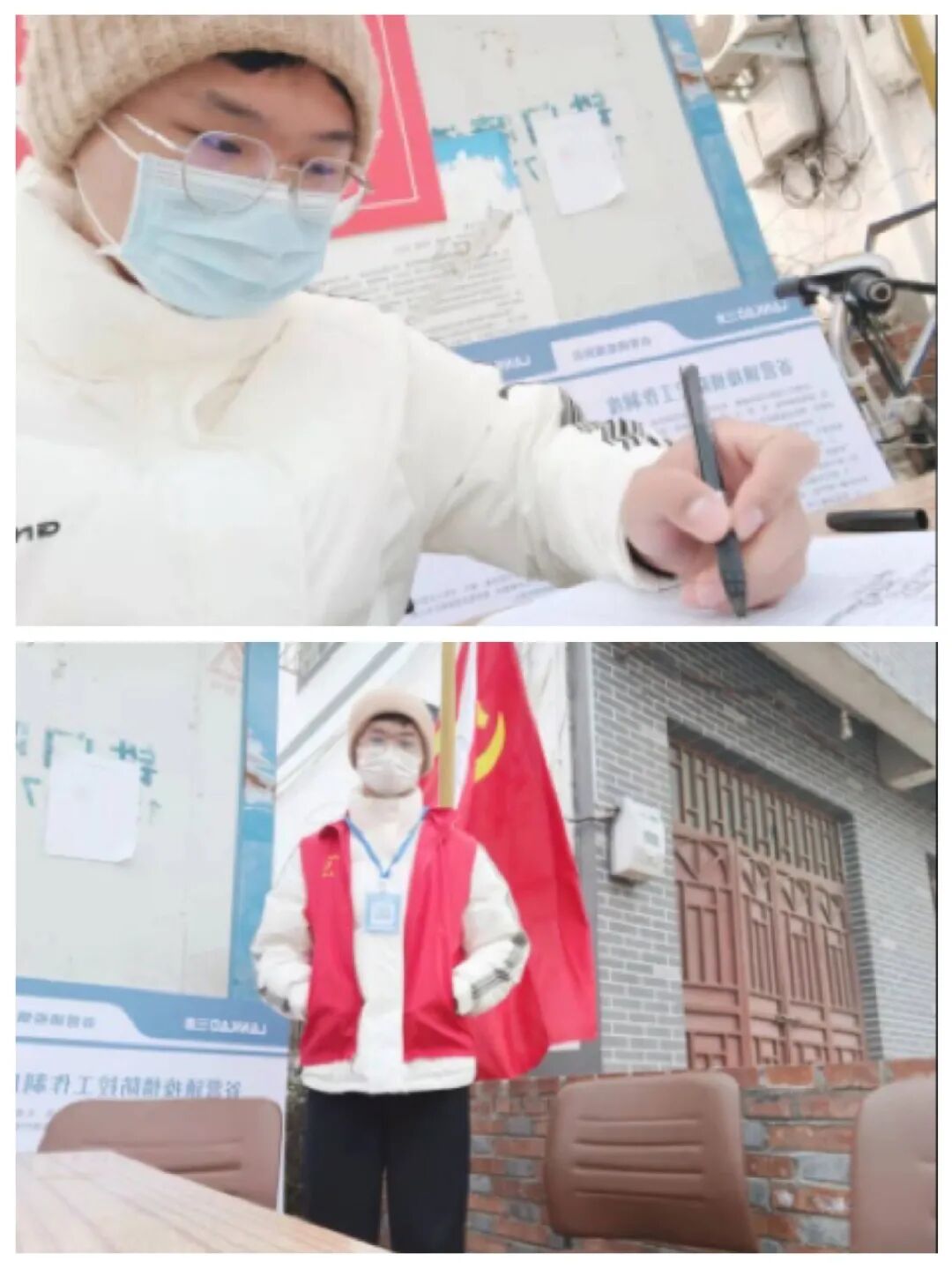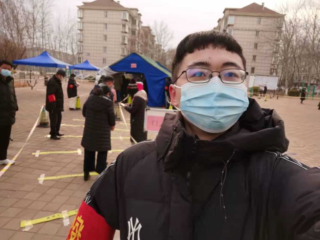 身在天津的李嘉铭向社区报名成为核酸检测志愿者,早上6点到社区居委会领取任务之后便到达所负责的核酸检测地点进行布置,并在核酸检测过程中负责检测人员登记录入,0度左右的温度并不能阻挡医护人员和志愿者们的抗疫热情,在志愿服务过程中他也遇到了很多困难和问题,但最后都顺利化解,尽显当代青年的责任与担当。