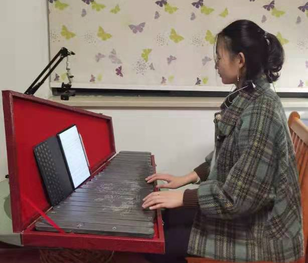 对于诸葛梦佳来说,之前没有系统地学过乐器,但是非常喜欢听歌,她就想利用寒假通过乐器把喜欢的歌演奏出来。在机缘巧合下,诸葛梦佳发现了石琴这个乐器,它很好上手,声音也很空灵,在家里学习觉得累了,就对着自己喜欢的歌的谱子去练习弹奏,每当学完一首歌曲,心里也是满满的成就感。学习器这是她空闲时很享受的一个过程,在未来也会坚持下去!