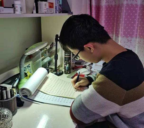 每晚八点,魏庆都会翻开字帖开始练字,除了让字体更加美观外,在练字的过程中会使浮躁的内心逐渐平静下来。一页字写完往往都让人感到心旷神怡,心理上的疲劳与不安都能得到很好的缓解。
