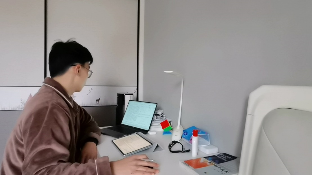 上午8:00,杨璟屹开始学习一些课外知识,为参加科研竞赛做准备。早晨的环境安静清爽,更能集中精力,于是他给自己安排了难度较大的英语文献阅读。复杂的电力电子理论、形形色色陌生的专业名词,需要耐心与毅力一点一点啃下来,杨璟屹每天都给自己安排了一定的阅读量,虽然一开始觉得晦涩难懂,但当真正啃完一篇、两篇……很多文献以后,他自己也有了很大的收获。