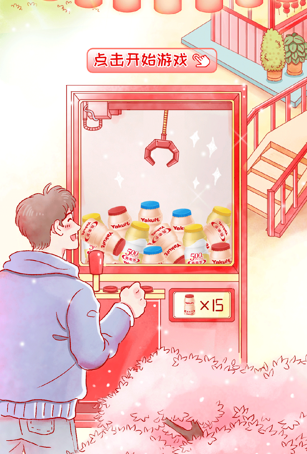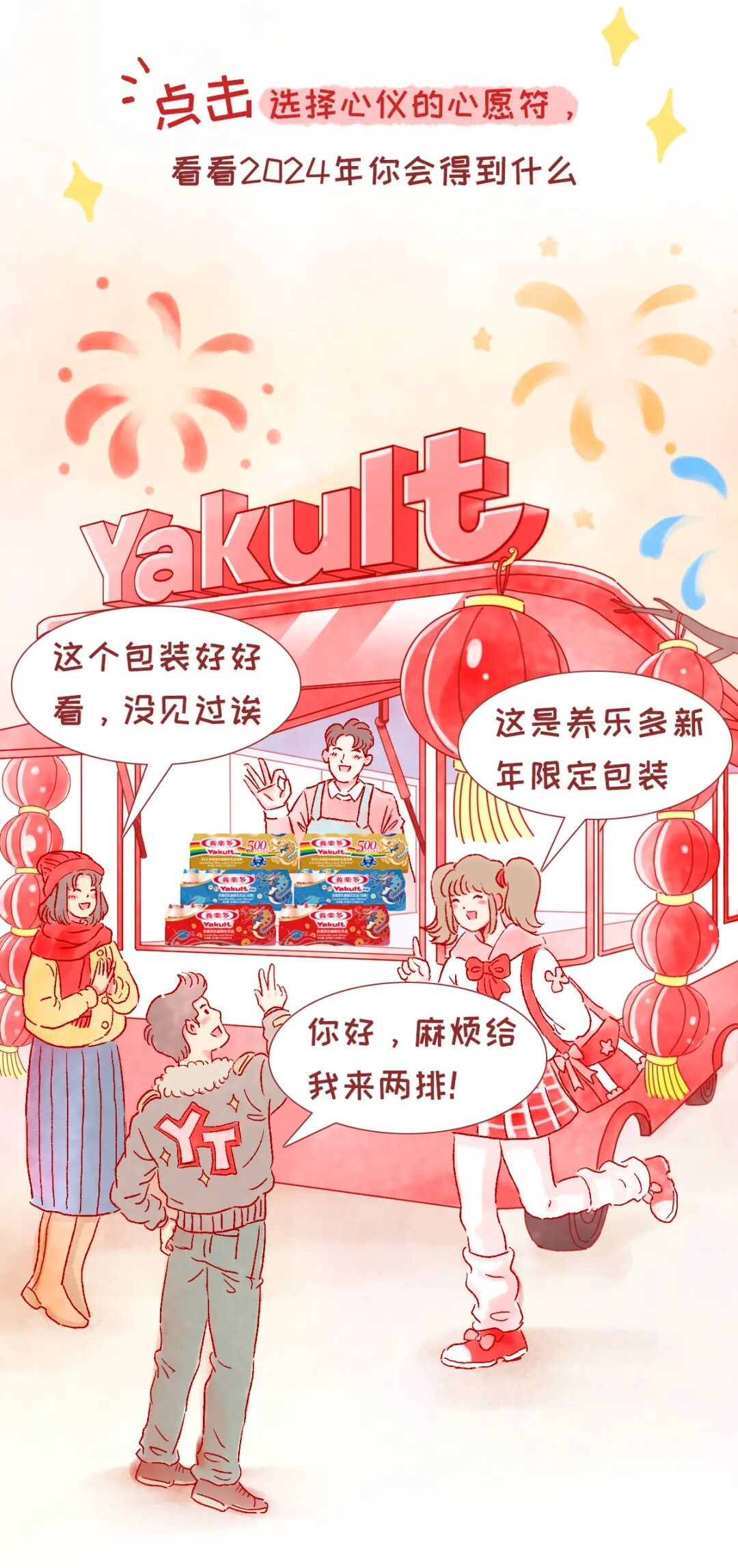 推荐:「点击切换」模拟抓娃娃机或者抽取心愿符,从而宣传养乐多2024新年限定包装,吸引大家购买。
