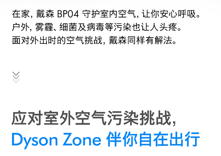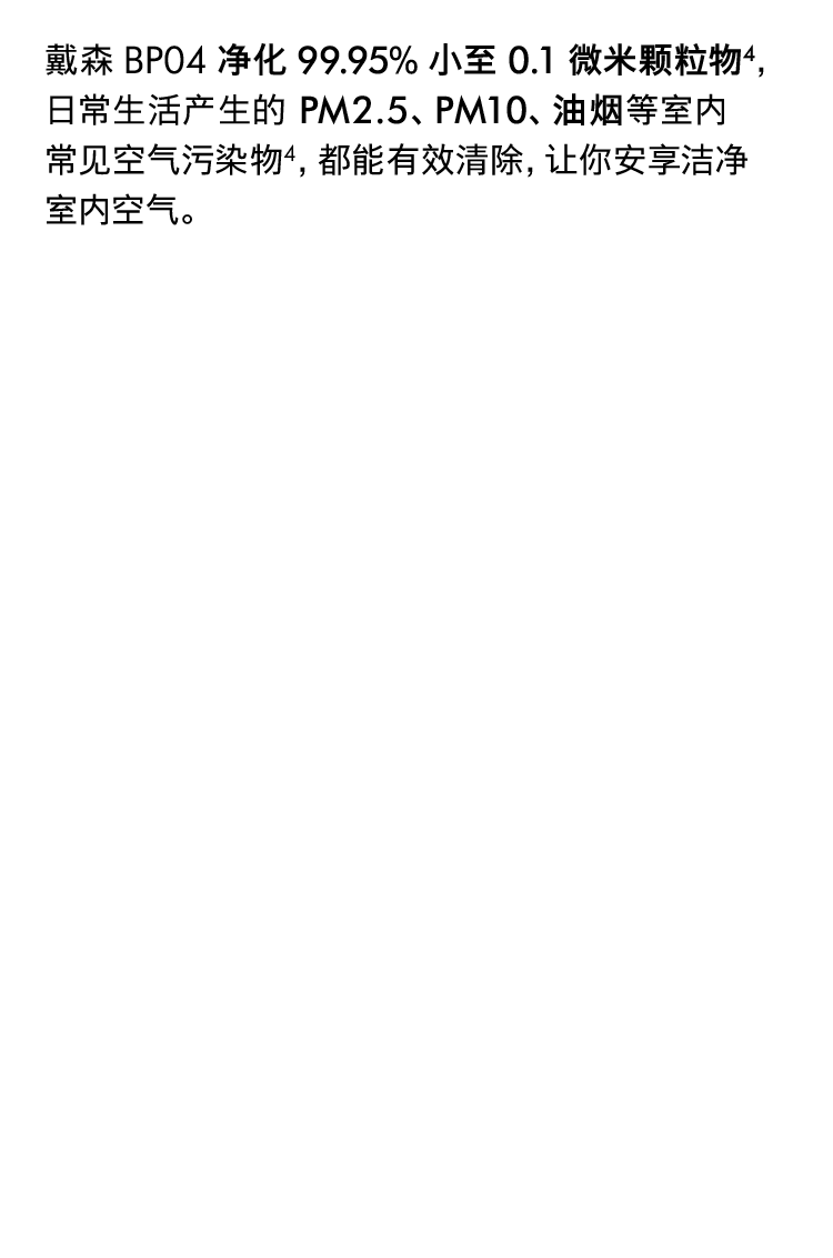 戴森 AM、TP、DP、HP、PH、BP 系列产品不具备空调制冷功能。数据资料除有明确表示出处,均为戴森内部使用或收集。实际结果会因使用环境和方式而不同。