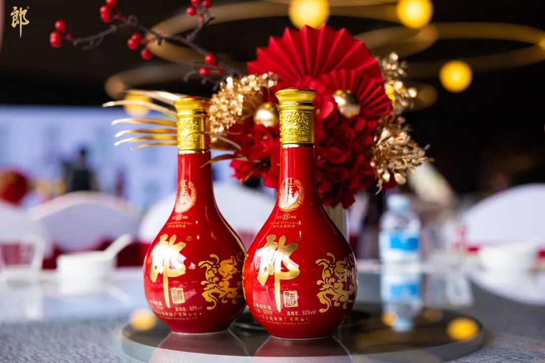 红花郎酒瓶的火红色
