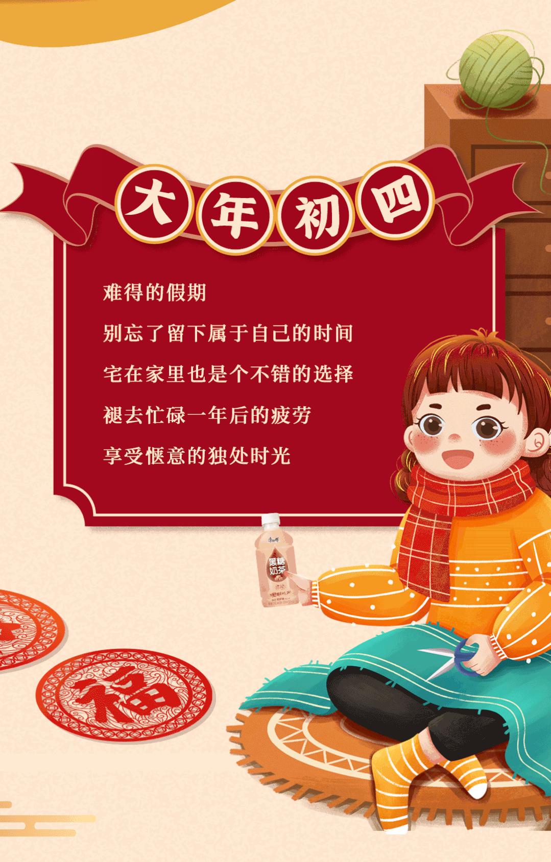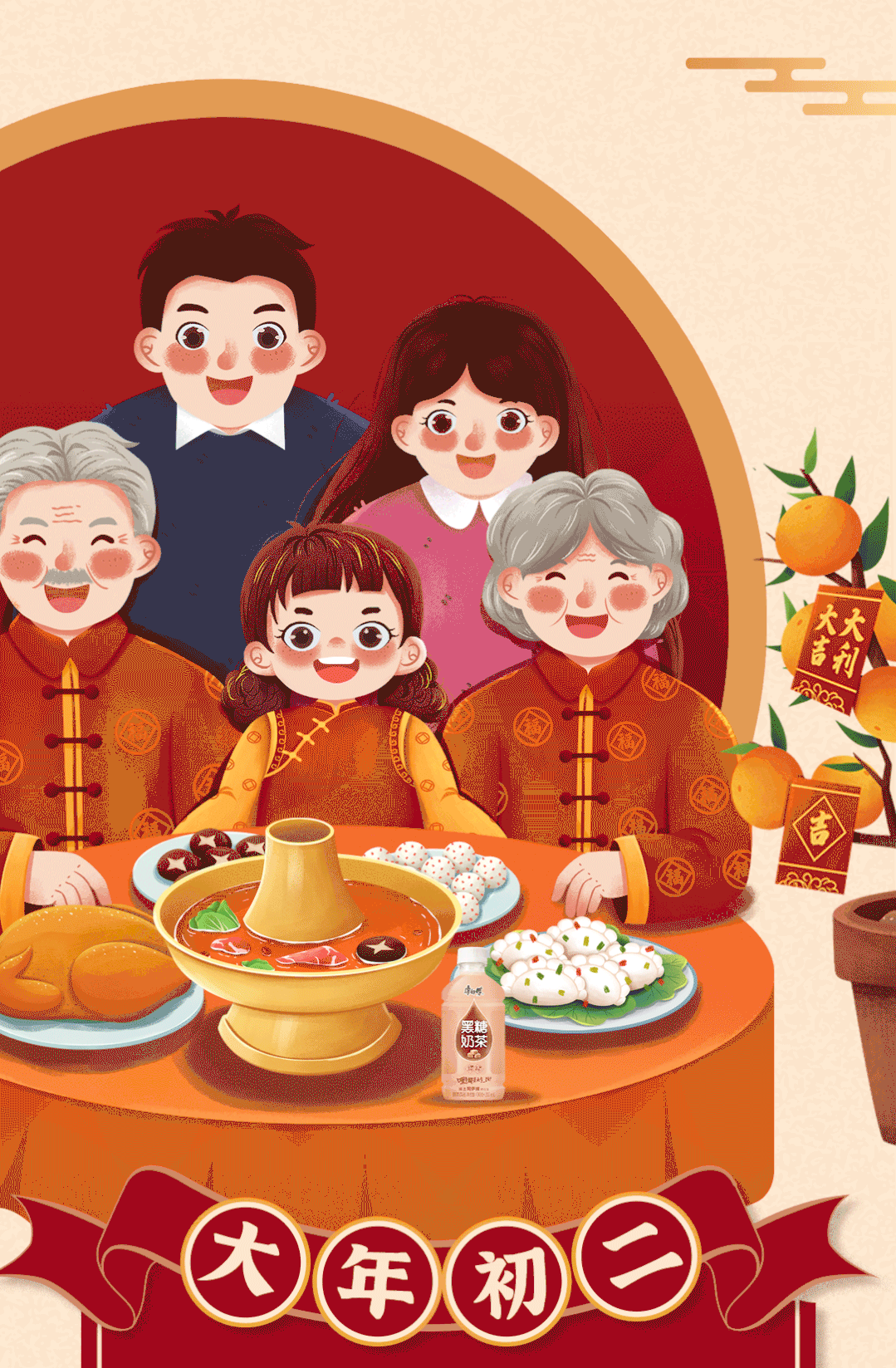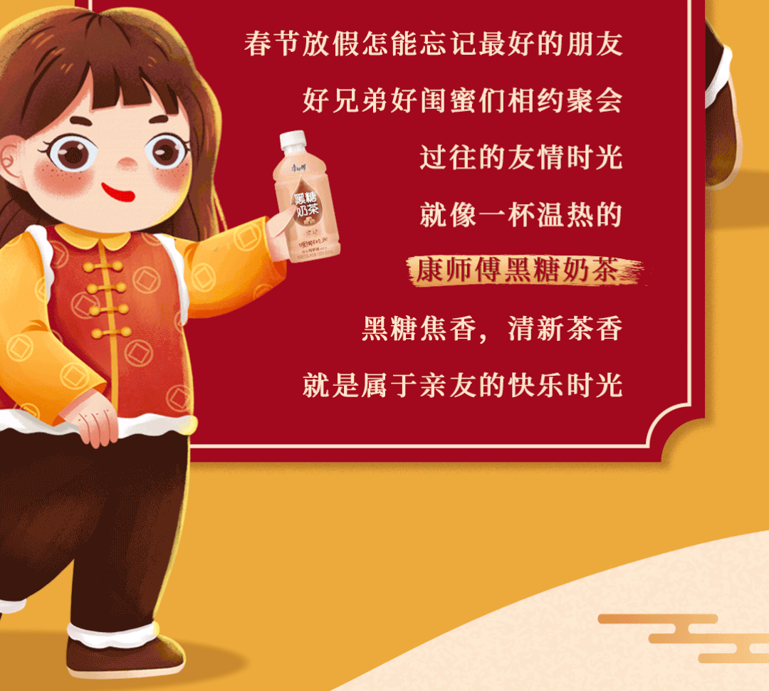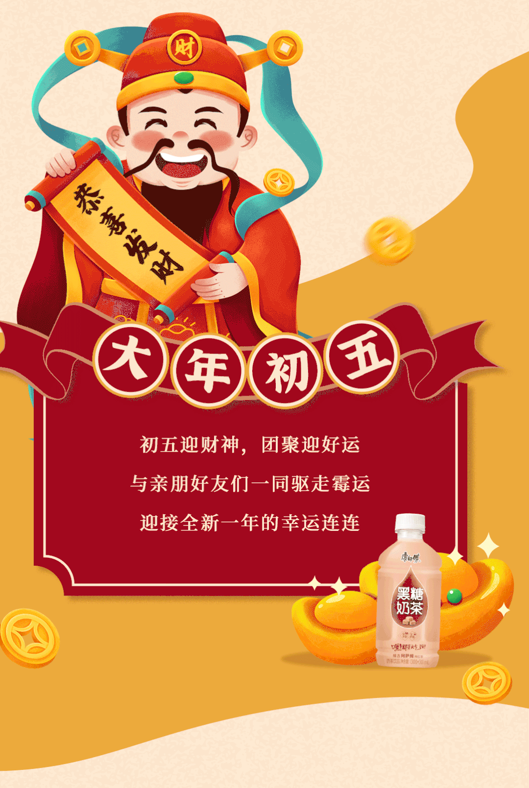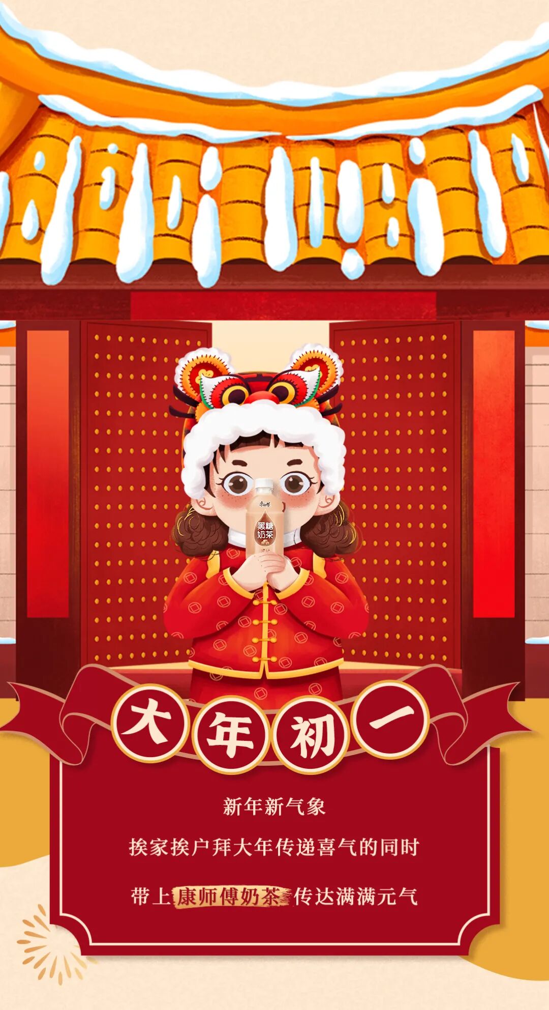 推荐:「点击展开」2022年元气春节,借此宣传初一到初五推荐的康师傅奶茶,吸引更多客户购买。