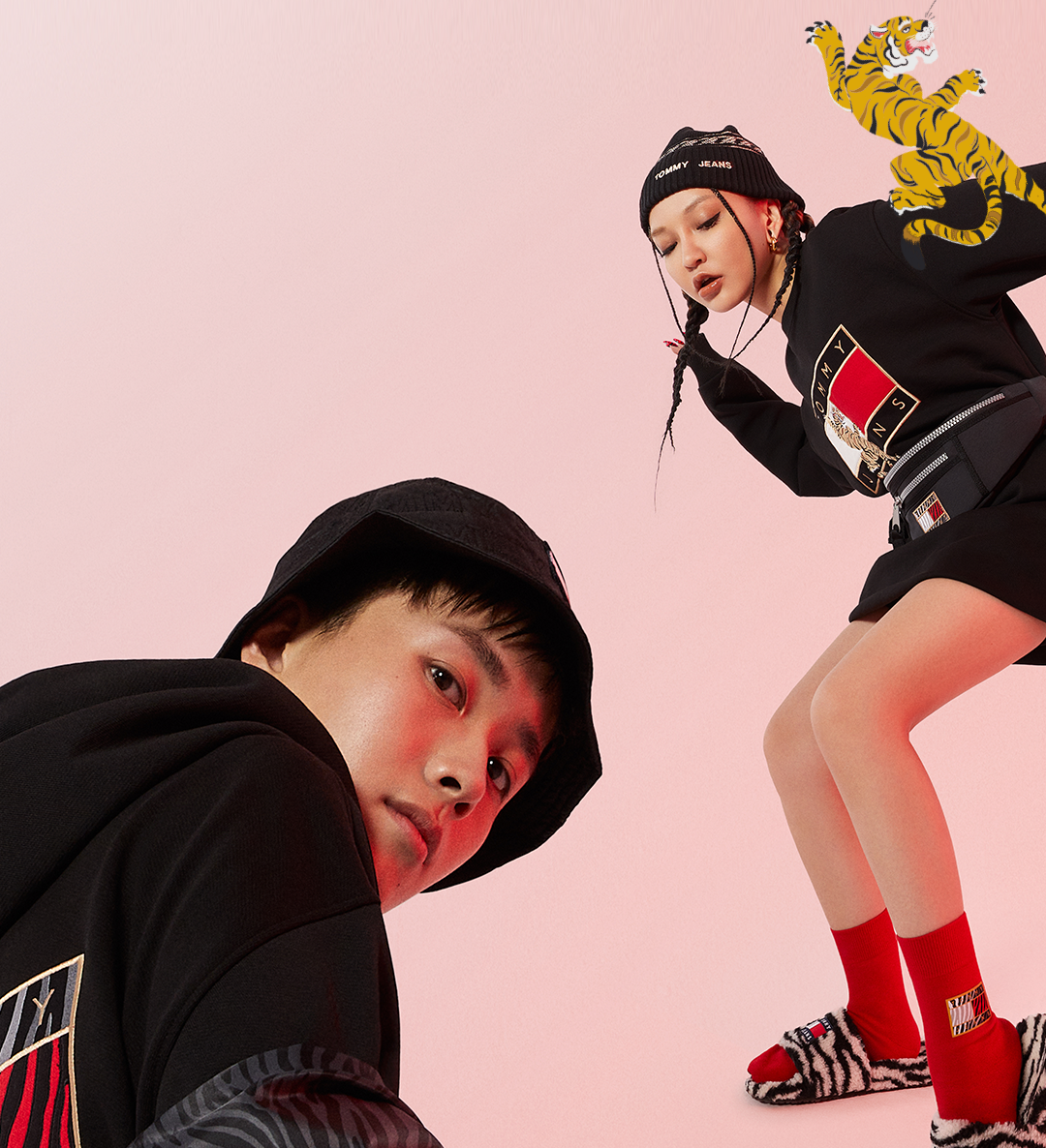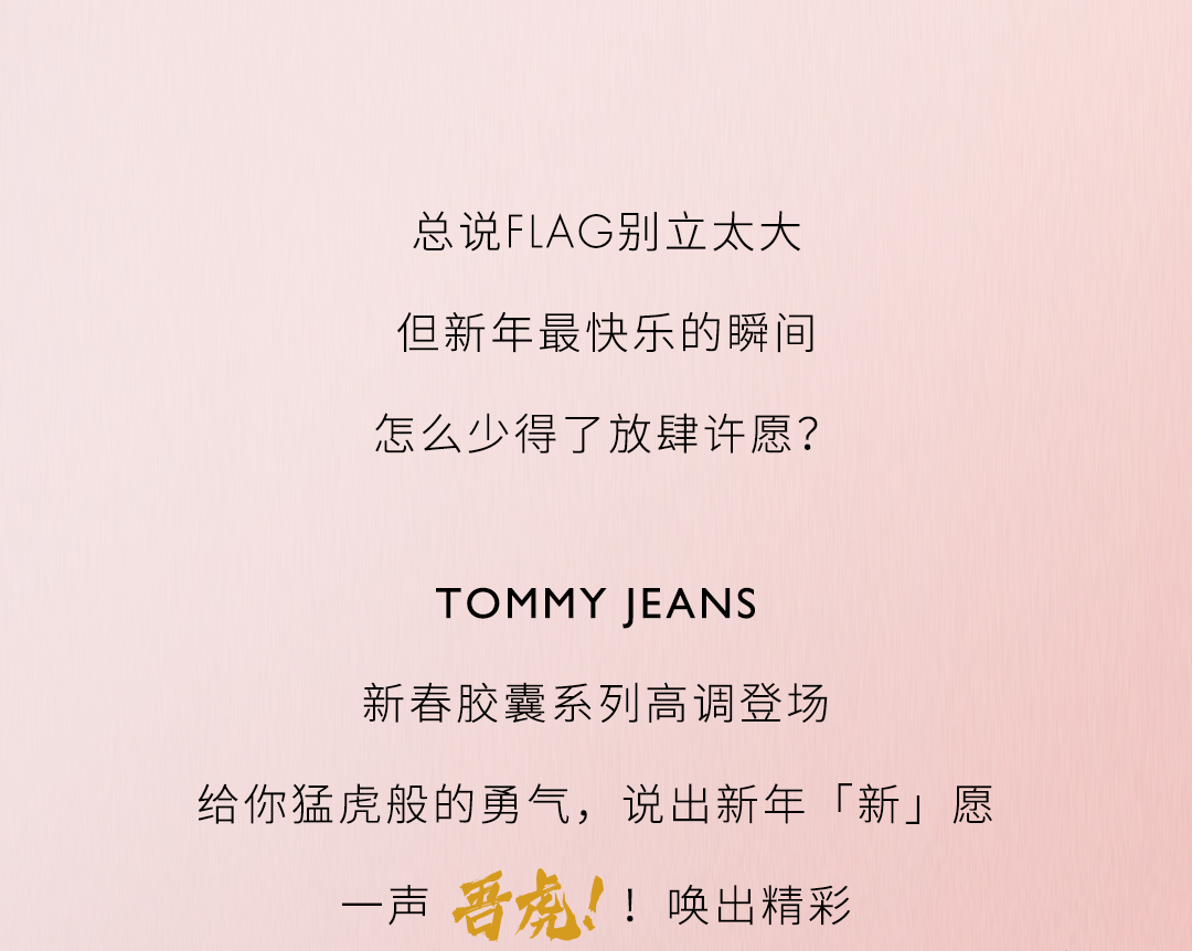 推荐:「点击伸缩式展开」TOMMY JEANS新春胶囊系列,「左滑」查看服装展示,吸引更多客户购买。