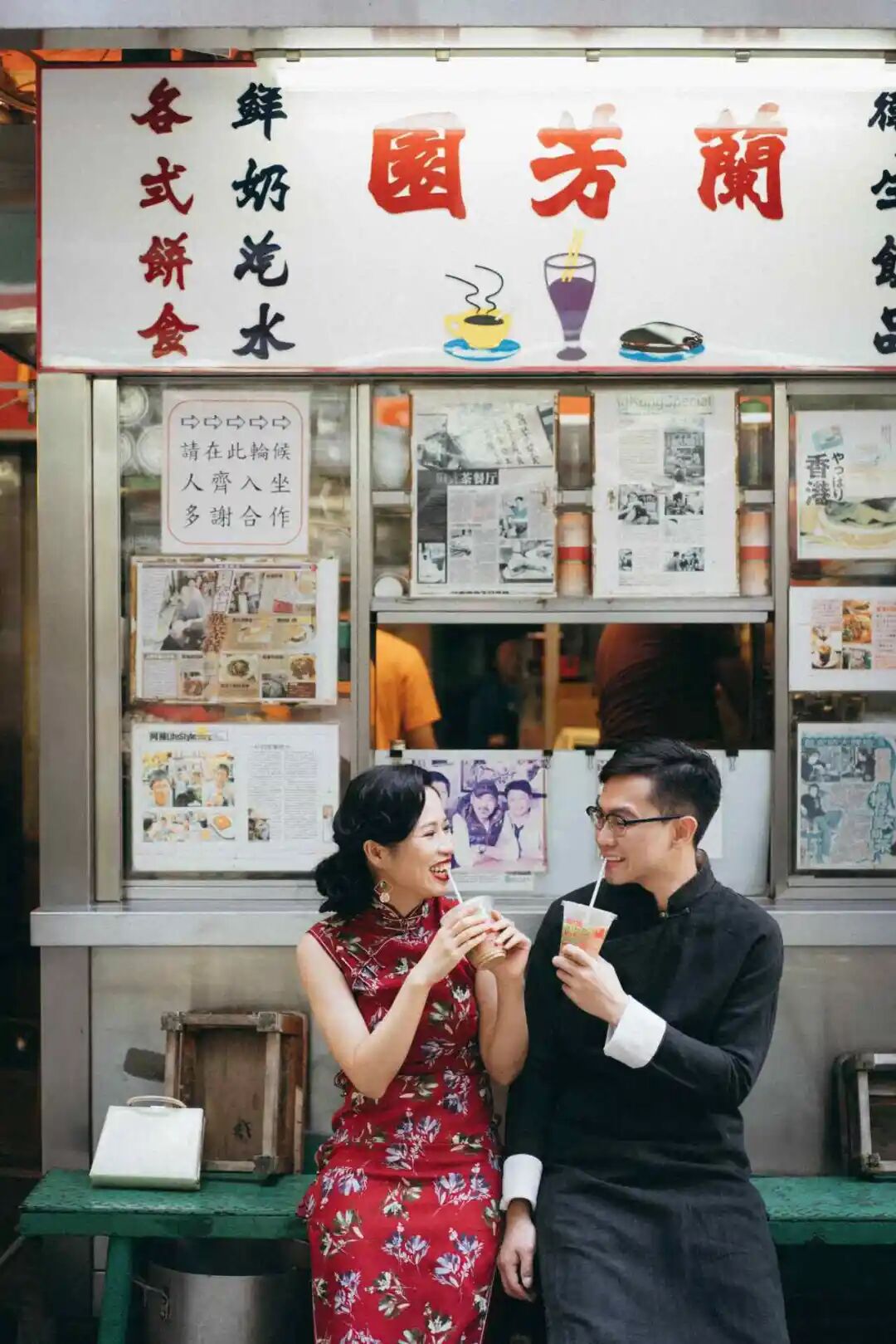 可以选在人潮熙攘的港式特色大排档内,重现《花样年华》的港风场景。
