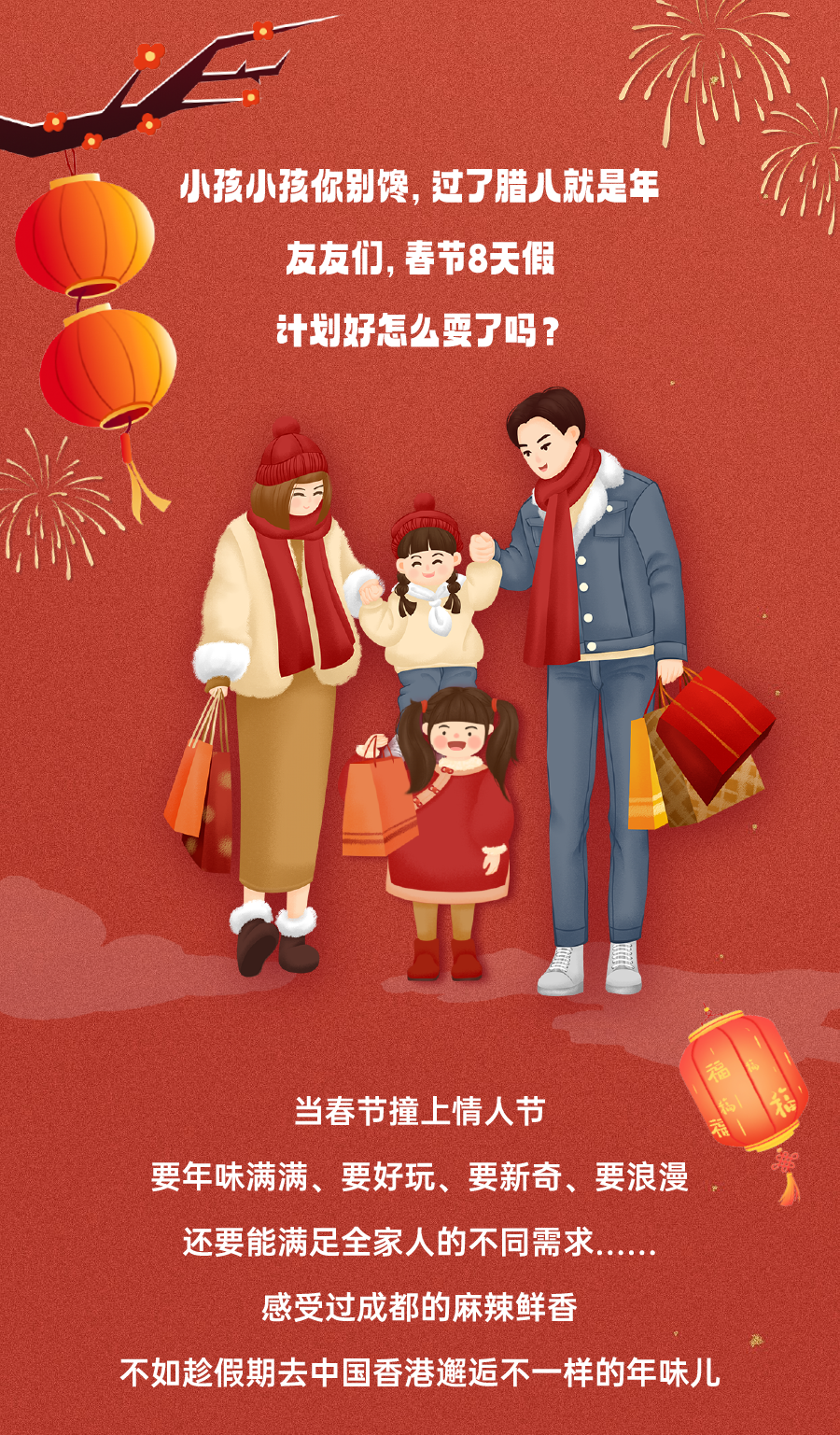 对于情侣来说,去香港过年也是一个很好的选择。当传统春节与情人节浪漫相遇,乐享双节,携手挚爱即刻开启一场令人怦然心动的浪漫之旅。