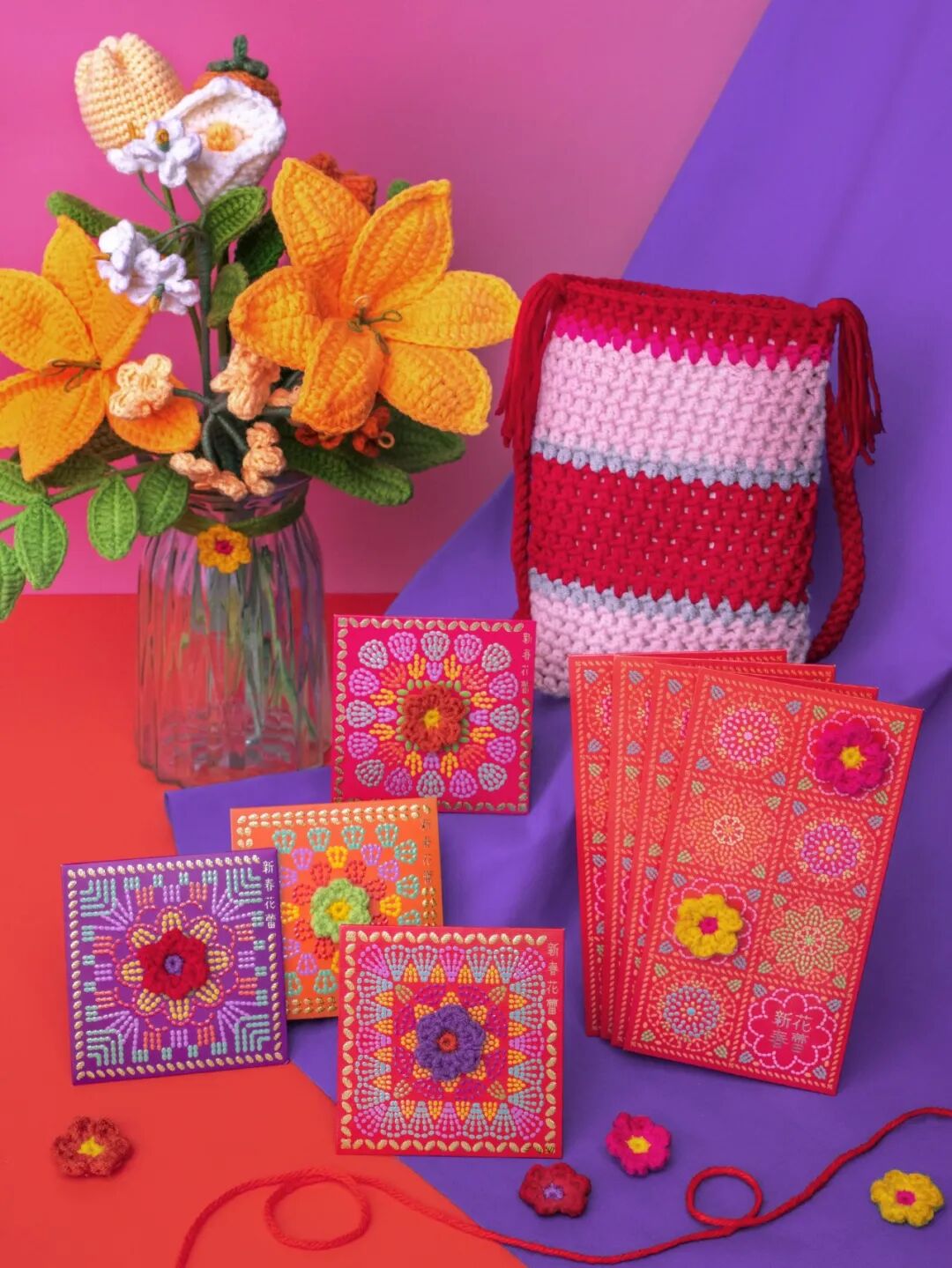 除此之外,陈蕾还为时代广场设计了加入编织元素的新春限定红包袋套装,把繁花似锦、花开富贵的新年祝愿传递出去!