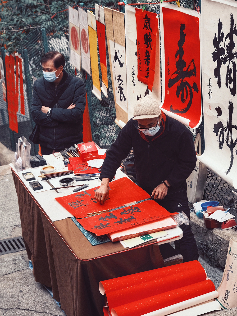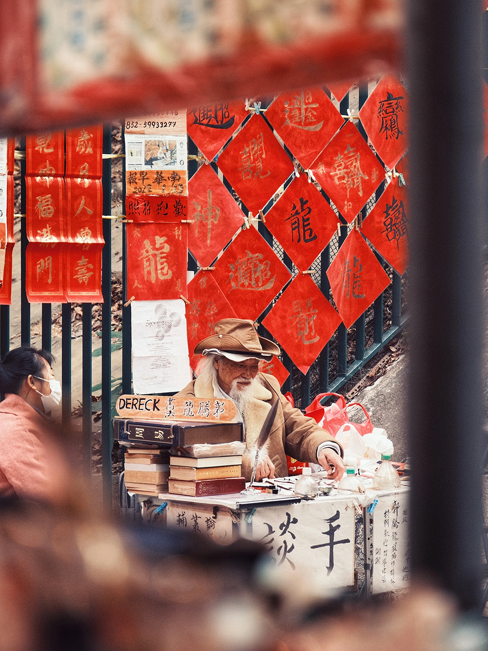 这个石级为主的街道,每到春节都汇聚了不少“书法大师”在沿路设摊,为大家手写春联。