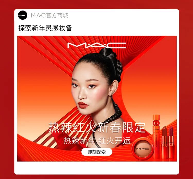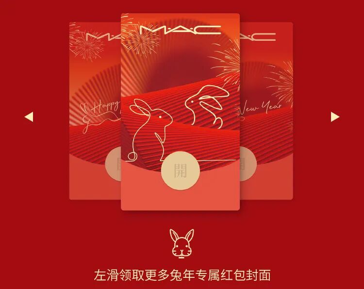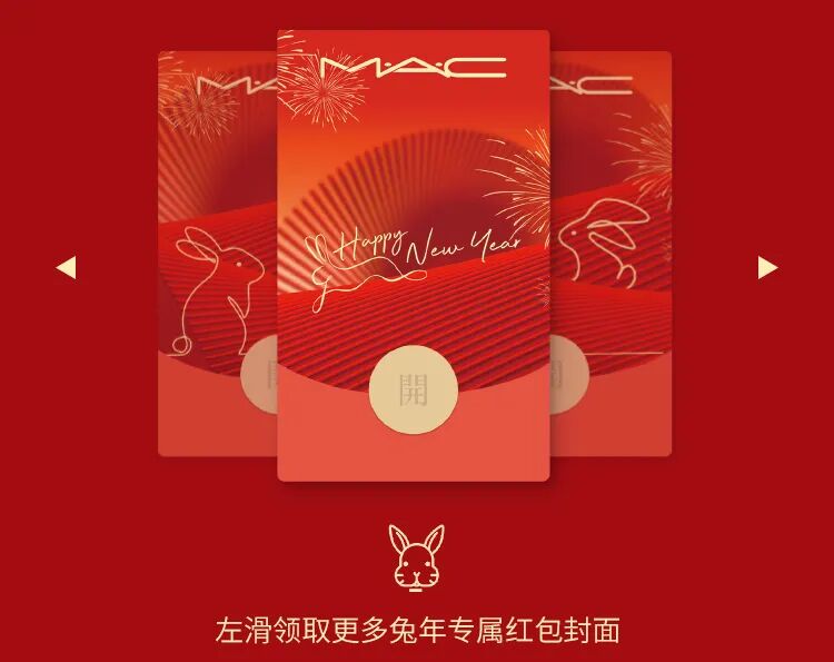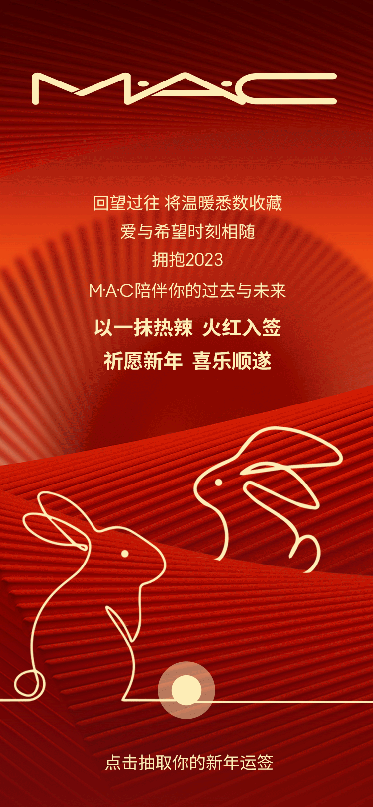 推荐:「点击展开」2023的总结和对2024年的期待,点击抽取「新年签」祈愿新年喜乐顺遂,借此吸引大家领取红包封面,从而宣传MAC魅可化妆品。