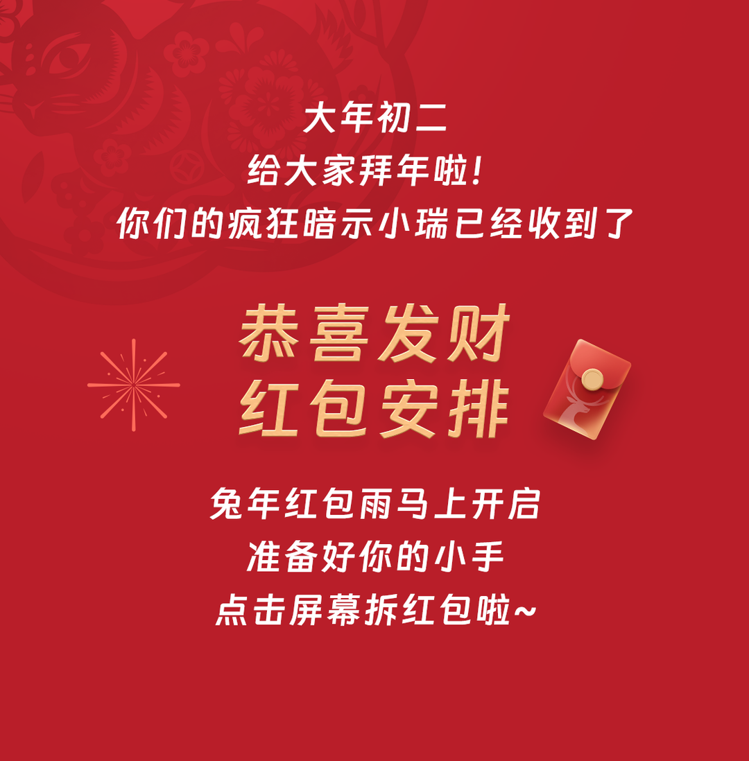 推荐:「点击展开」模拟拆开小瑞兔年红包,依次介绍相应的饮品,最后引导大家领取红包封面并使用。