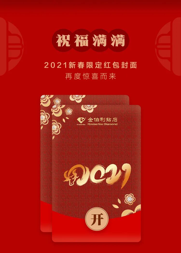 推荐:金伯利钻石在新春佳节来临之际,引导客户「点击展开」品牌代言人的新年祝福和新春限定品牌红包封面,借此宣传品牌。