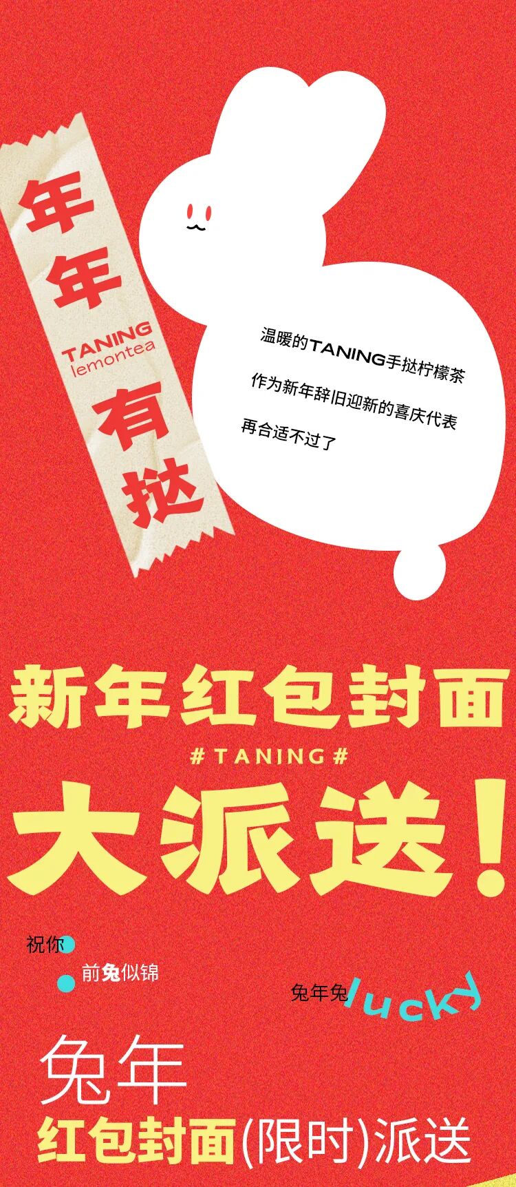推荐:「点击切换」查看TANING柠檬茶的饮品介绍,从而宣传挞柠柠檬茶的兔年红包封面,吸引大家领取。