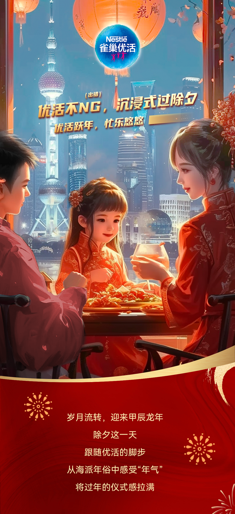推荐:「点击弹窗」查看龙图上的光点相应的年俗介绍,借此宣传雀巢优活和除夕宠粉福利。