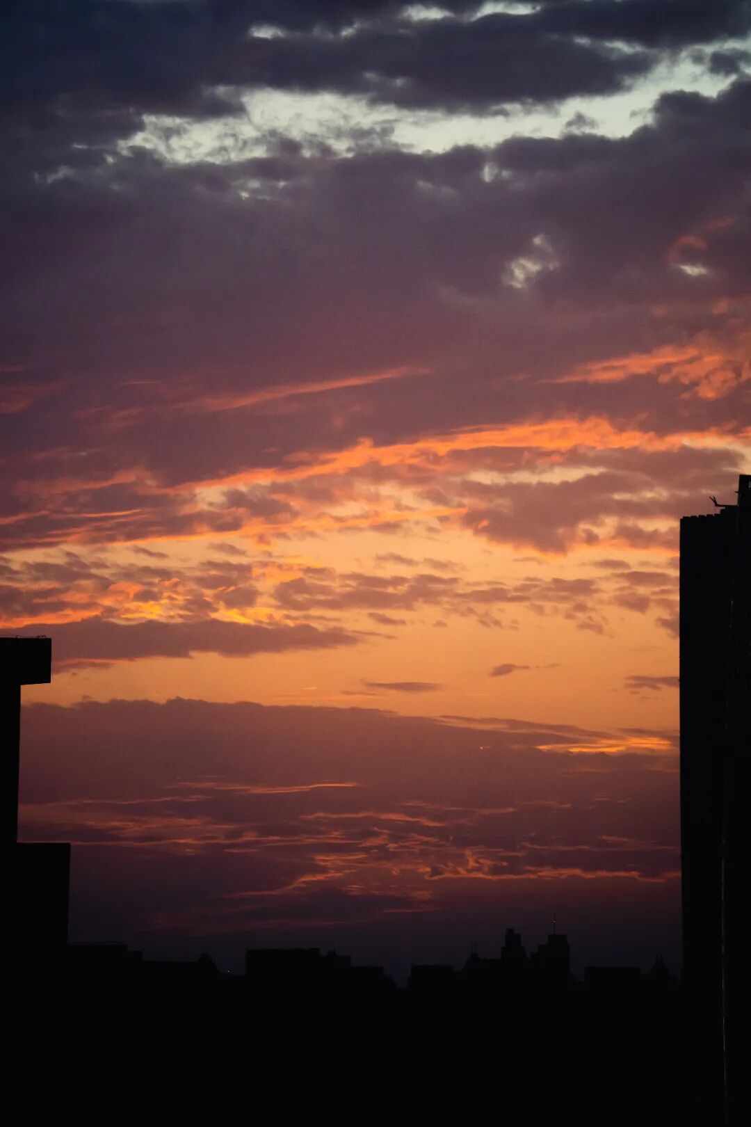 天色渐渐暗下来之后的橙粉蓝紫