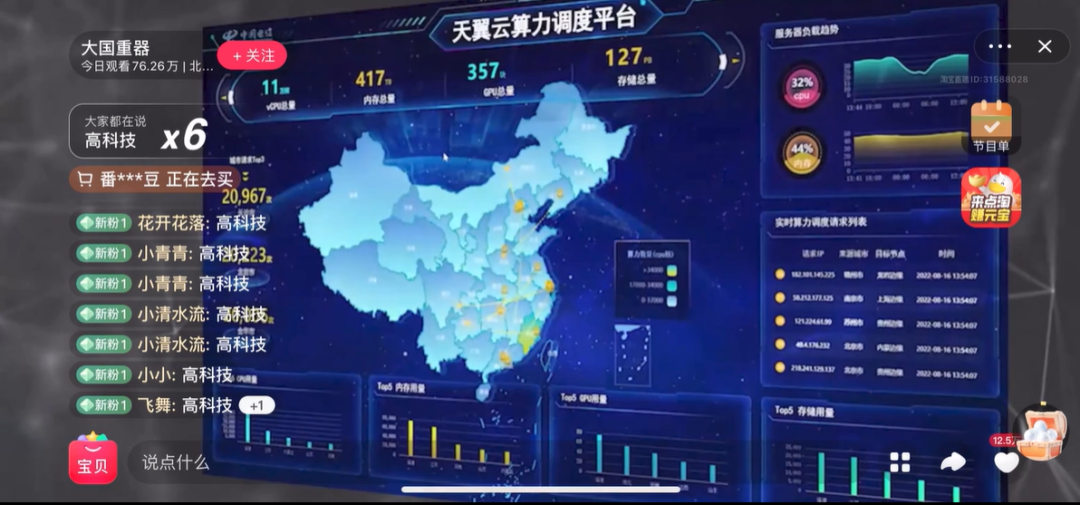 1、继中国电信天翼云4.0算力分发网络平台——“息壤”登榜2022年双十一“最硬核购物车”火爆出圈后,1月16日“息壤”再次亮相“史上最硬核直播间”——国资小新“______”淘宝直播间。