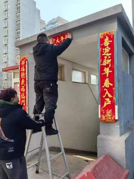 春节前夕,节日的气氛渐渐高涨,处处洋溢着期待和喜悦。后勤集团公有用房管理中心的员工仔细地挑选位置,将一副副精心准备的春联平整地贴在了各职工宿舍楼大门的两侧。这不仅是一种节日的装饰,更是一份暖心的祝福,表达了中心和集团对职工们的重视,也寄托了对员工新年新气象、生活和工作双丰收的美好祝愿。同时这也可以增强职工之间的凝聚力和归属感,使得宿舍不仅仅是一个休息的场所,更是充满人文关怀的家园。通过粘贴对联,营造温馨和谐的节日氛围,让员工在异乡也能感受到家的温暖和新年的喜悦。