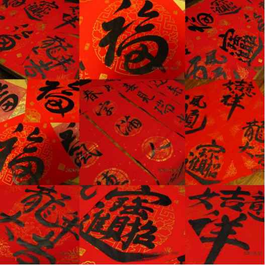 这是我第一次手写春联,因刚入门书法,一个字需要提前练习千万遍,这个过程充满挑战,需要耐心与坚持,但人是欢愉的。为即将到来的节日做足准备,在自己热爱的事物上持续打磨,一点点的进步,穿针引线般进行,收获满意的、舒畅的结果,红与黑的搭配最终呈现在门上。心意、练习、时间、鼓励……交织成家中最浓的年味儿。龙年祝大家龙行龘龘,前程朤朤。