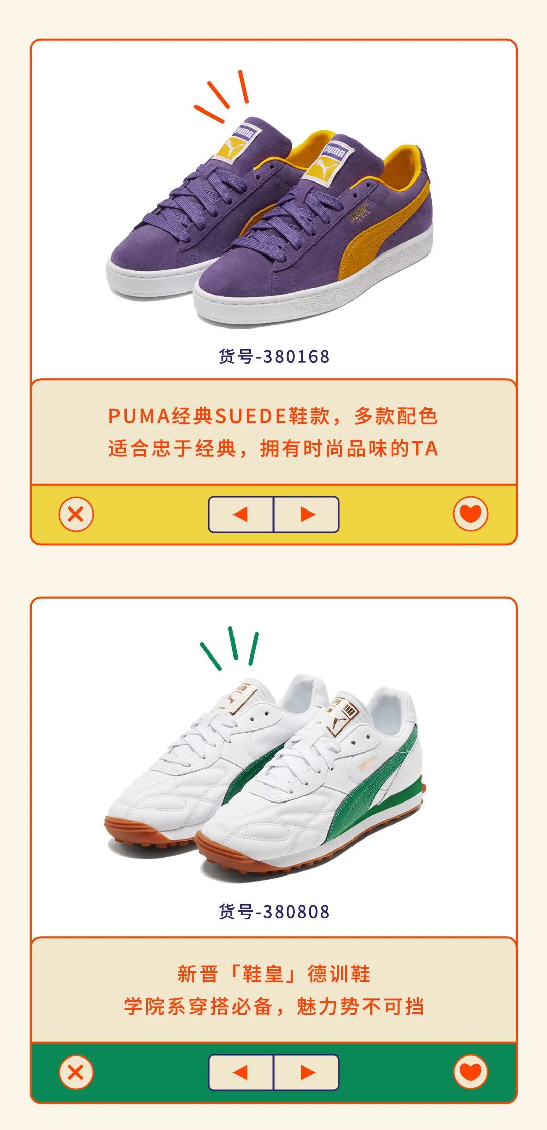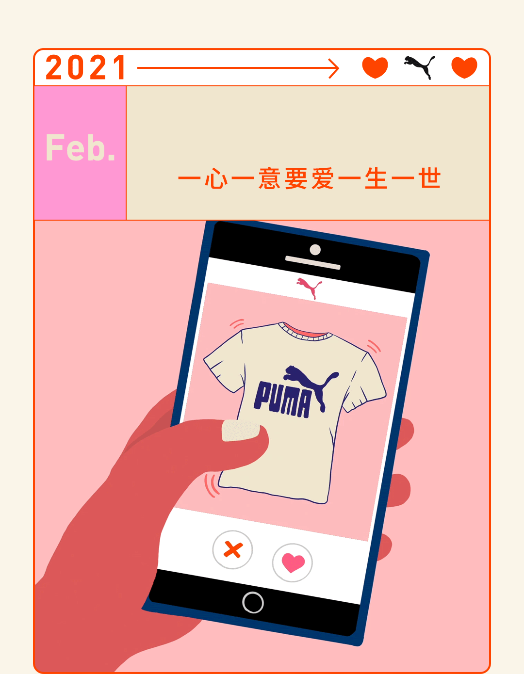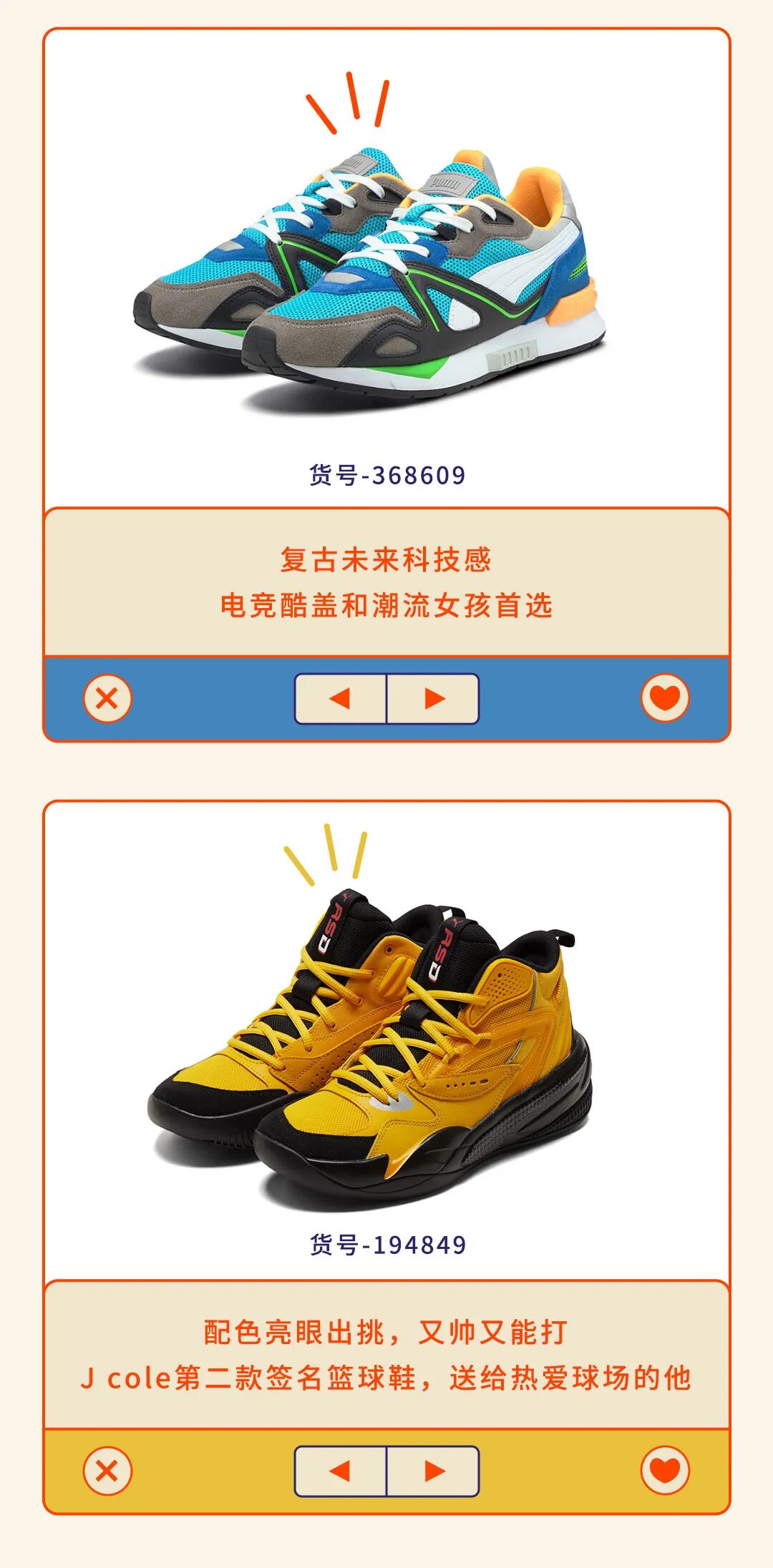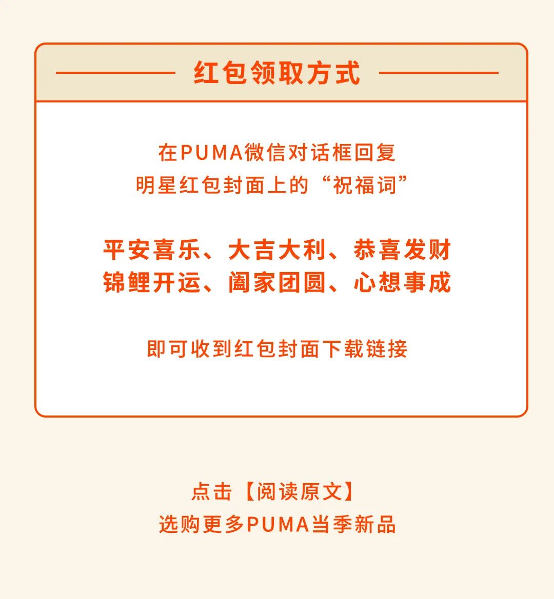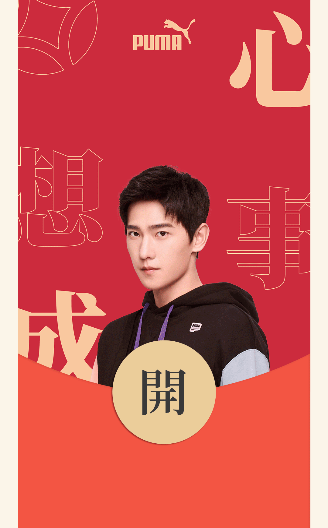 推荐:PUMA在情人节来临之际,吸引客户点击切换产品图并展开产品介绍信息,顺势推出红包封面,吸引大家互动并转发。