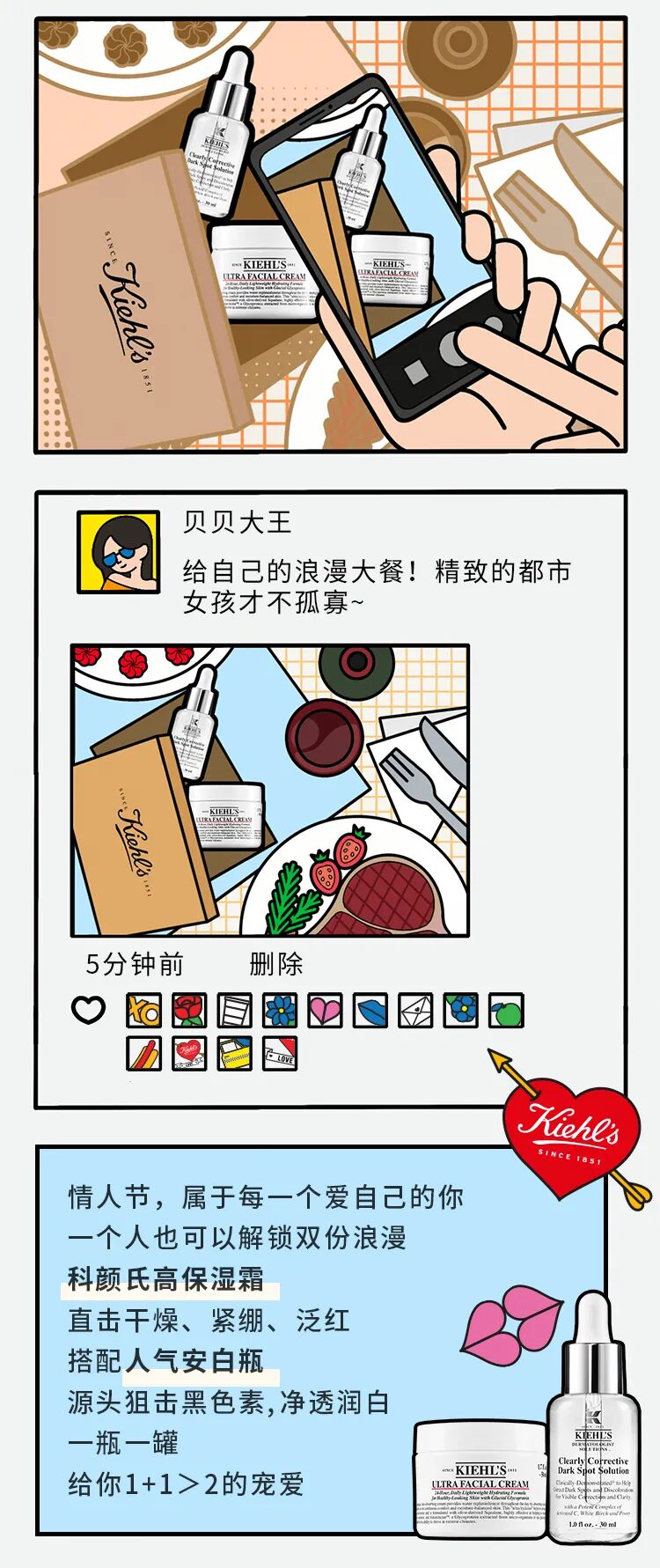 推荐:科颜氏吸引大家通过点击展开的方式查看对“爱人”的爱和对自己的爱,引起人们的共鸣,借此推荐品牌产品。