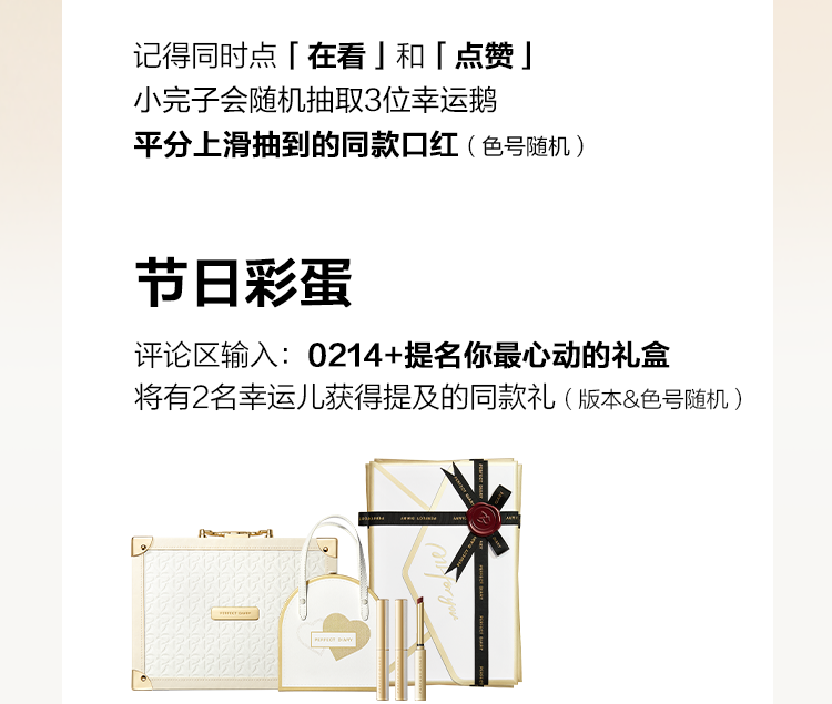 推荐:完美日记在情人节即将来临之际,通过引导大家点击礼物盒打开推荐礼物介绍,吸引客户购买口红送给心爱的人。
