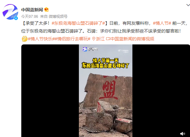 浙江岱山有“双合石壁”版海誓山盟石;
