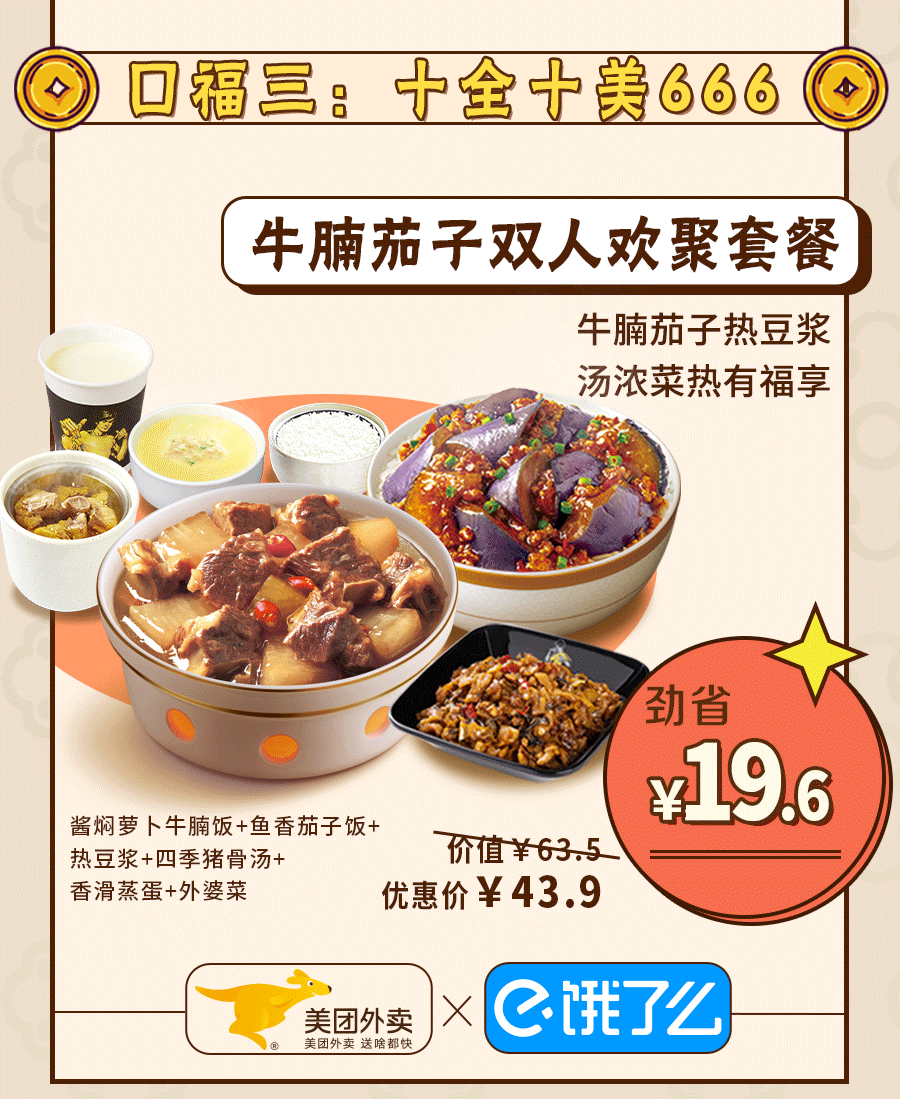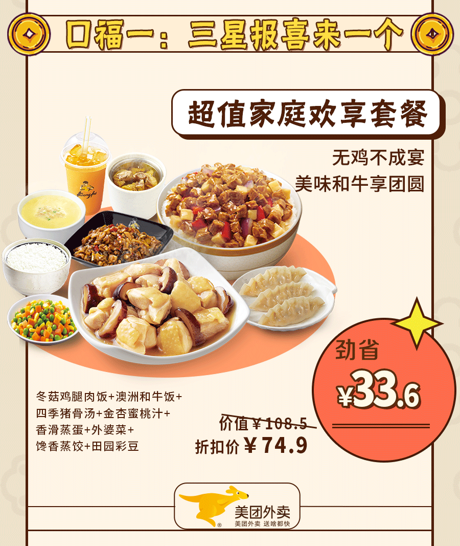 推荐:「点击展开」大年初五团圆大餐介绍,吸引更多客户在饿了么和美团上购买套餐。